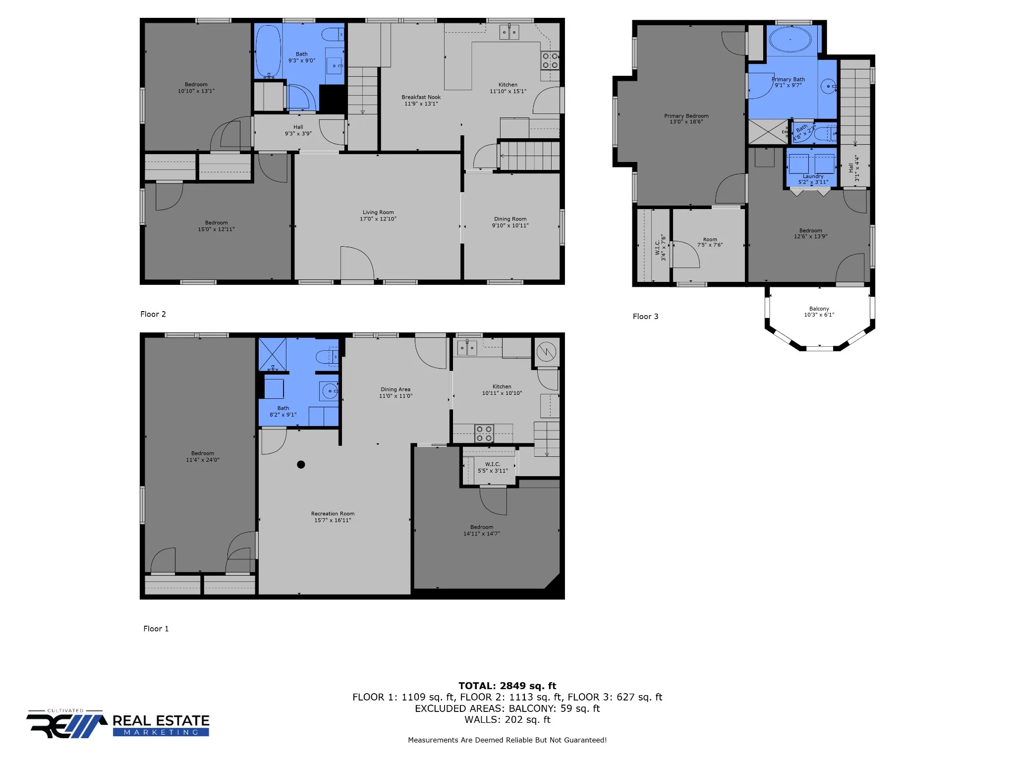 3 Baths Full + Half Bathrooms