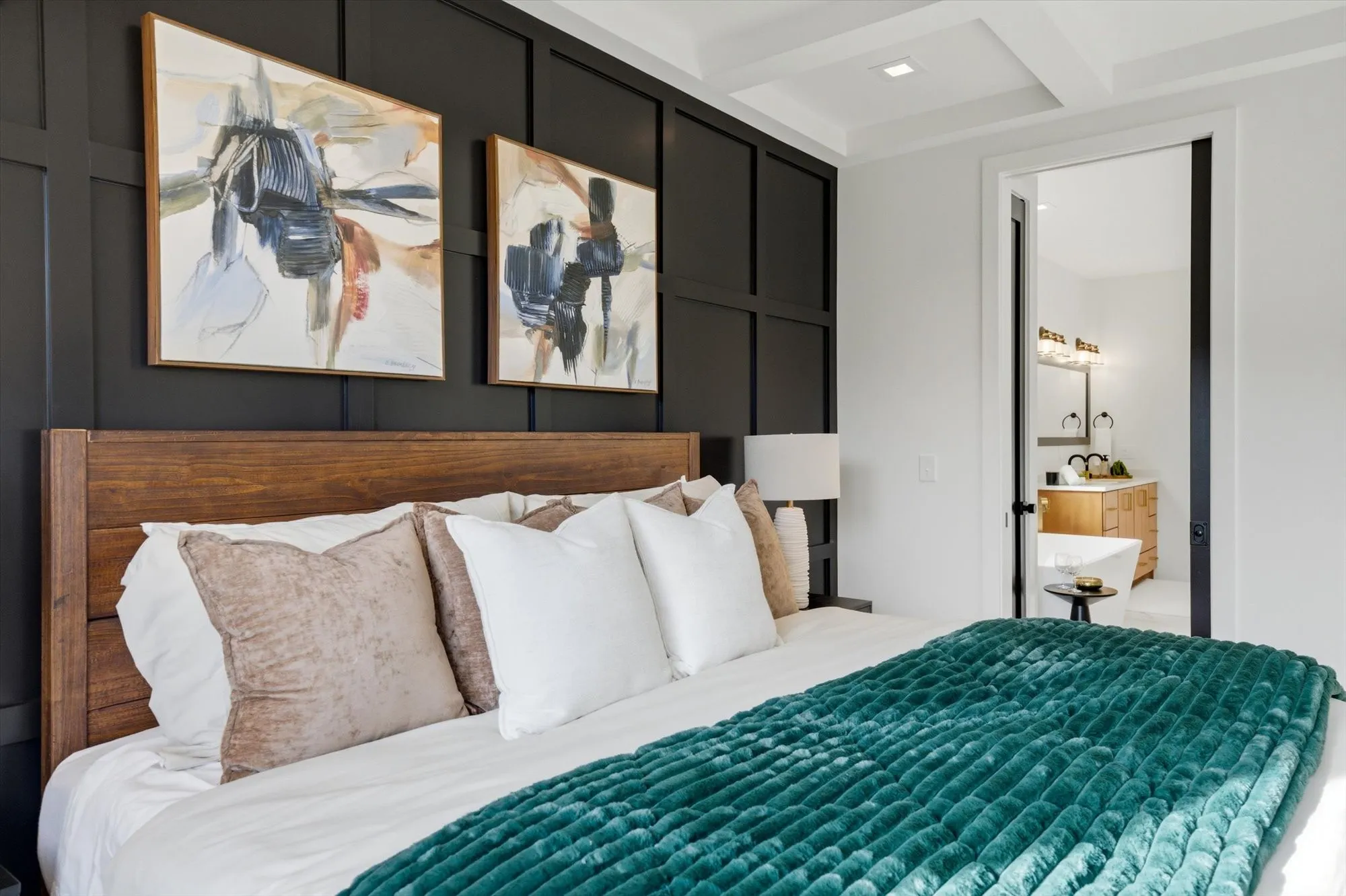 This 4-bedroom, 3.5-bath home features a dramatic 30-ft cathedral ceiling with exposed rustic beams, 9-ft ceilings throughout, solid hardwood flooring, marble and tile accents, quartz countertops, and custom cabinetry.