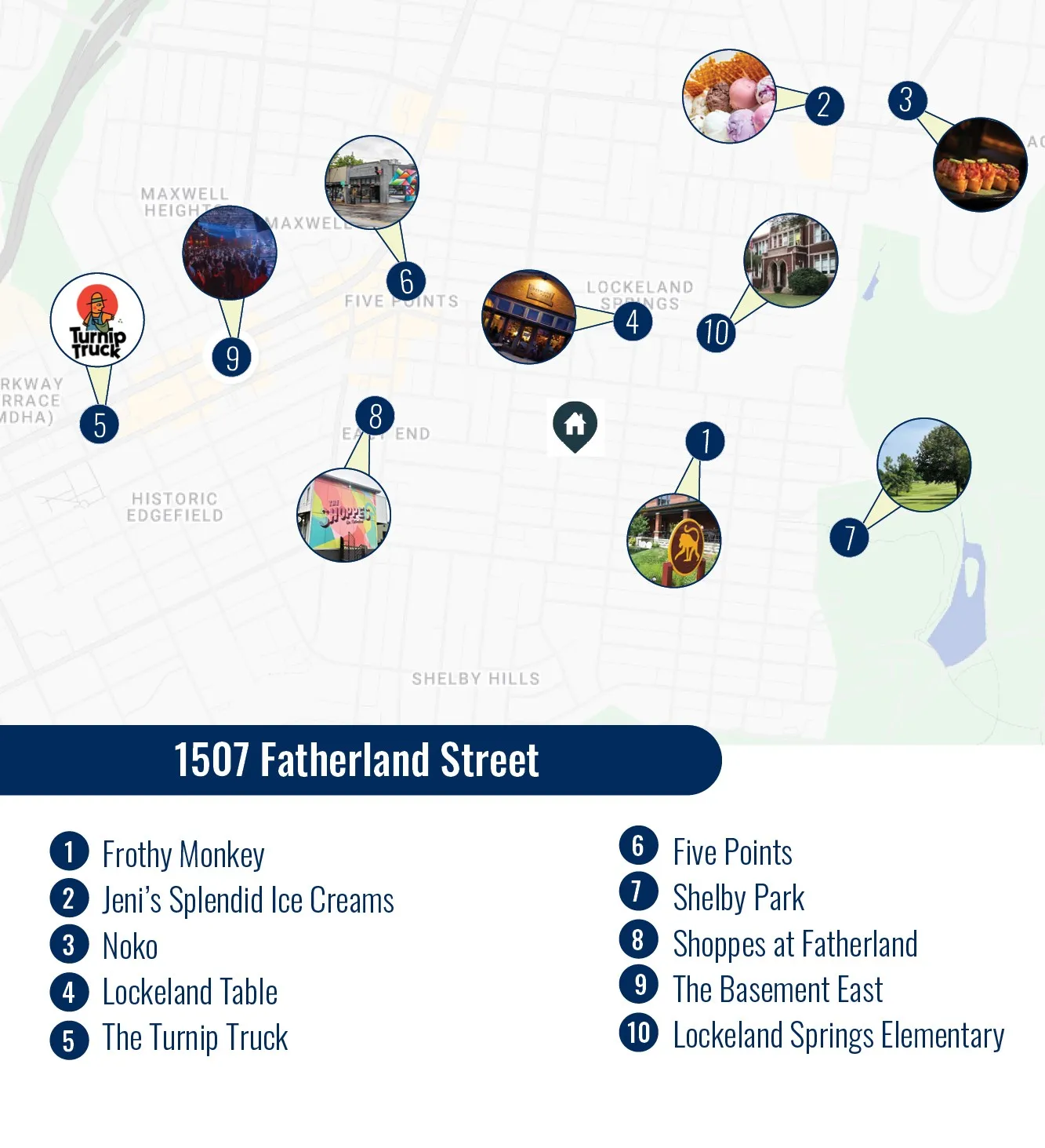 - Directions: Take Shelby Avenue to Left on S. 14th Street, Right on Fatherland Street. Home on the left.