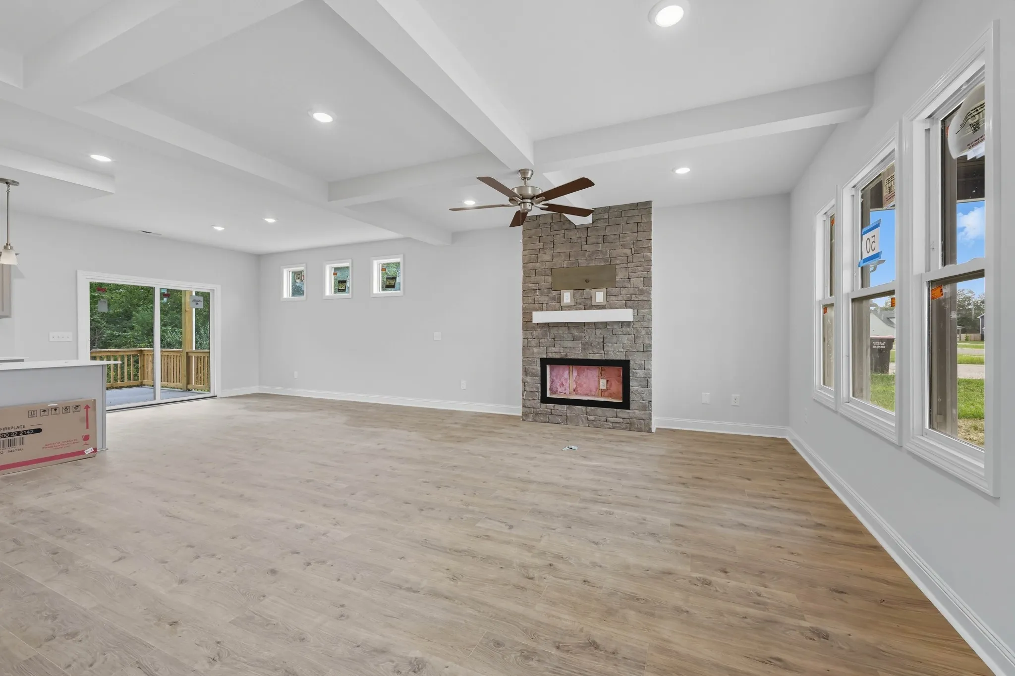 NO BACK YARD NEIGHBORS! Trees to provide extra privacy! Offering $15,000 in buyer incentives! This highly desired open-concept floor plan features a stunning floor-to-ceiling stone fireplace in the great room and a spacious kitchen with a large granite island—perfect for entertaining. You’ll love the convenience of a walk-in pantry and the primary suite located on the main level for added comfort and accessibility. The primary bathroom is a true retreat, featuring a designer showcase double tile shower, double vanities, and a large walk-in closet. Enjoy the added value of a state-of-the-art media convenience panel and an insulated smart garage door for modern functionality. Step outside to your covered outdoor living space, ideal for relaxing or hosting guests. Your friends will be envious, you deserve a home like this!