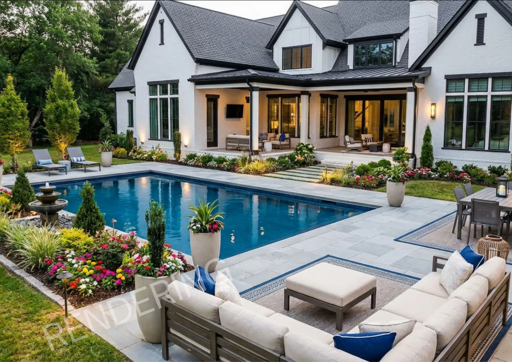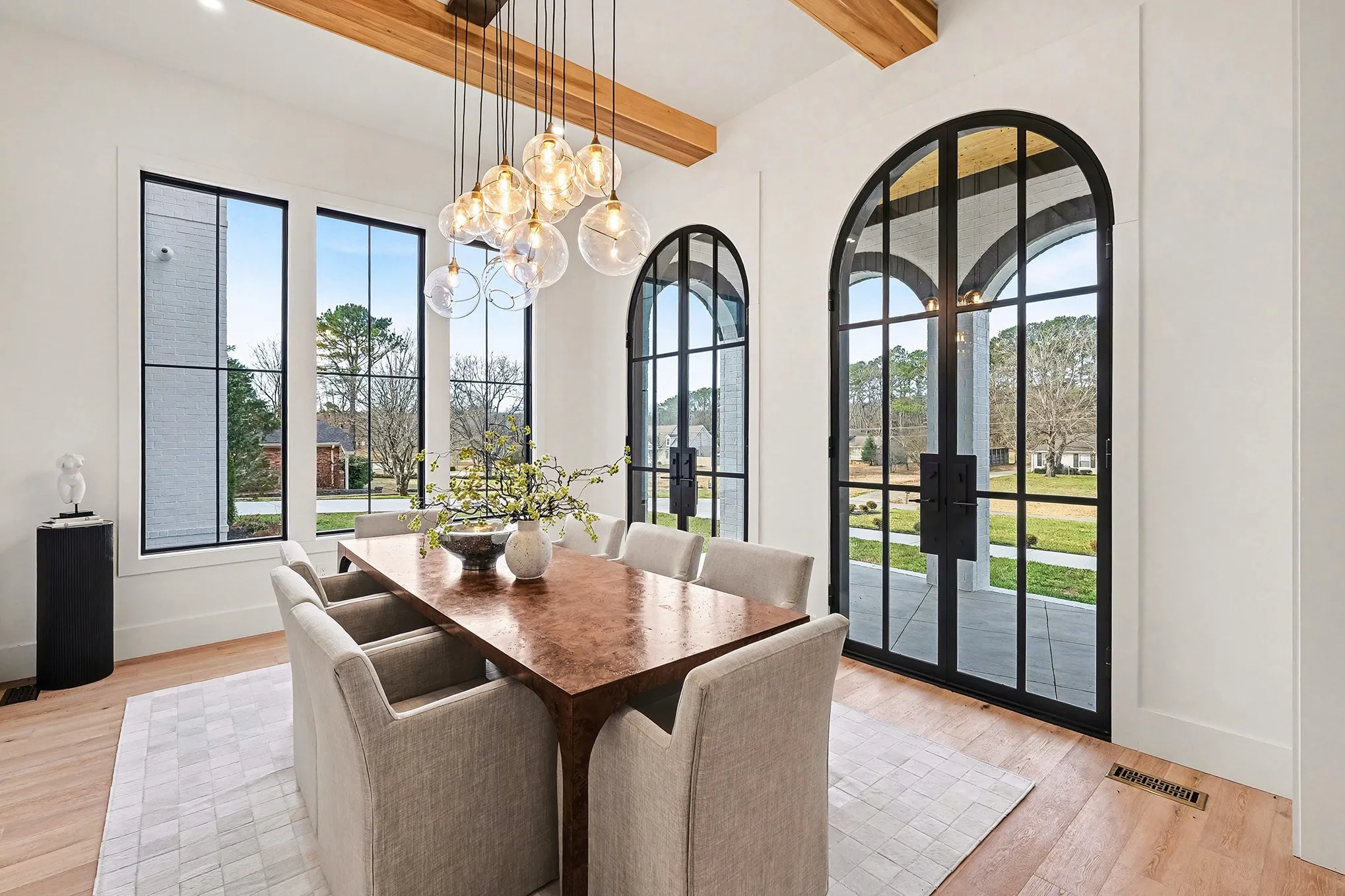 Inside, the experience is immediate and immersive. Natural light frames every room with oversized windows, the layout flows with purpose—allowing the home to feel equally suited for refined entertaining and quiet, everyday living. This is a space that adapts to you. The kitchen and main living areas anchor the home as its social core—designed to host effortlessly while still feeling intimate. Whether it’s a curated dinner party, a relaxed evening with close friends, or an unplanned moment that becomes a favorite memory, the setting elevates every experience. The primary suite is a private retreat intentionally separated from the pace of the rest of the home. Spa-inspired finishes, generous scale with ceilings and windows, and a sense of quiet exclusivity create a daily ritual rather than just a place to sleep. An additional full guest suite and media/creative spaces adorn first floor living. Upstairs boasts additional bedrooms and flexible spaces for enhanced lifestyle and versatility.