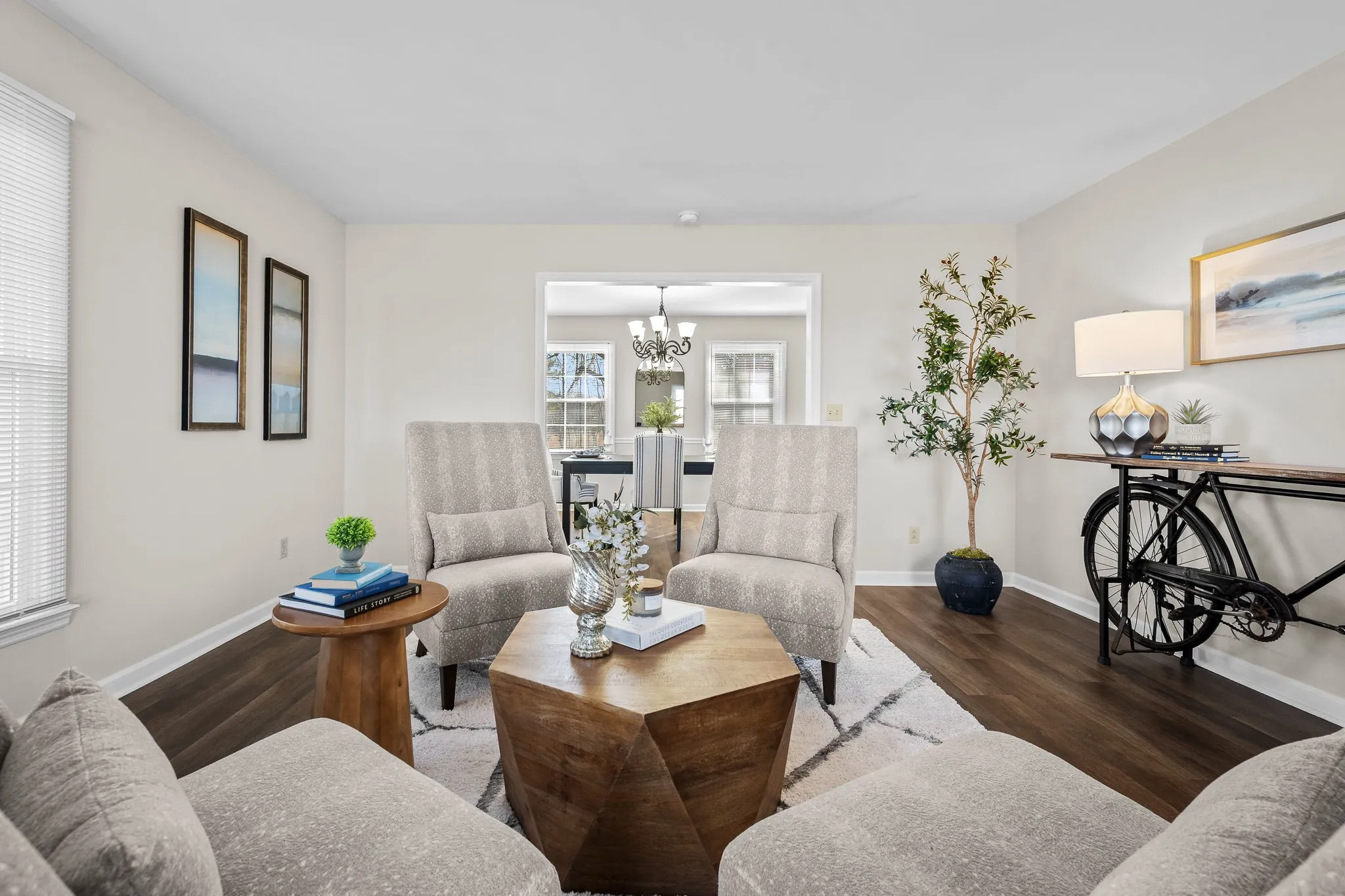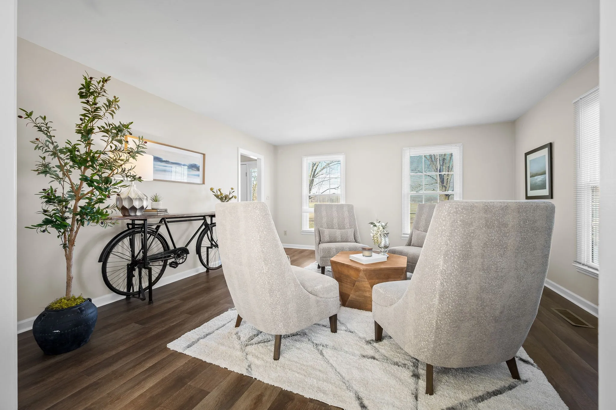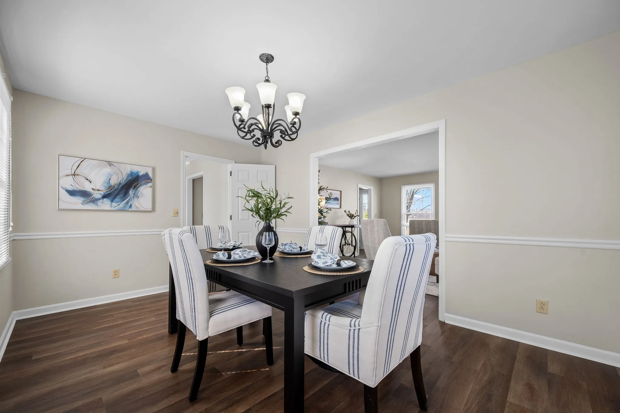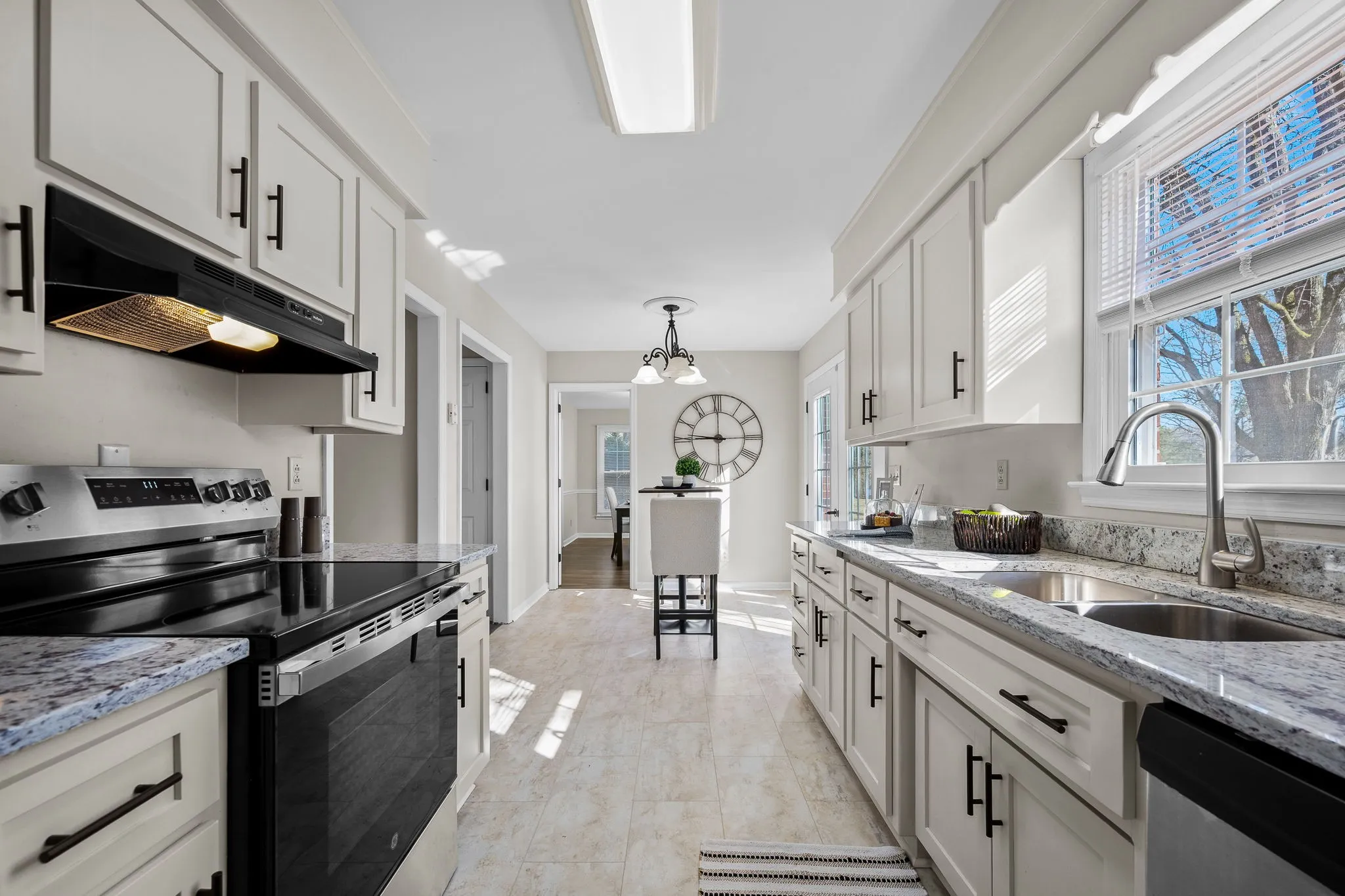 The interior showcases a freshly painted interior, new flooring, and replacement windows throughout. The inviting family room with fireplace creates a warm gathering space, while a formal living room and separate dining room offer flexibility for entertaining. The eat-in kitchen has been refreshed with re-faced cabinetry, granite countertops, new stove, disposal, and updated faucets, making it both stylish and functional. Some images on this listing have been virtually staged to help showcase the property’s potential.