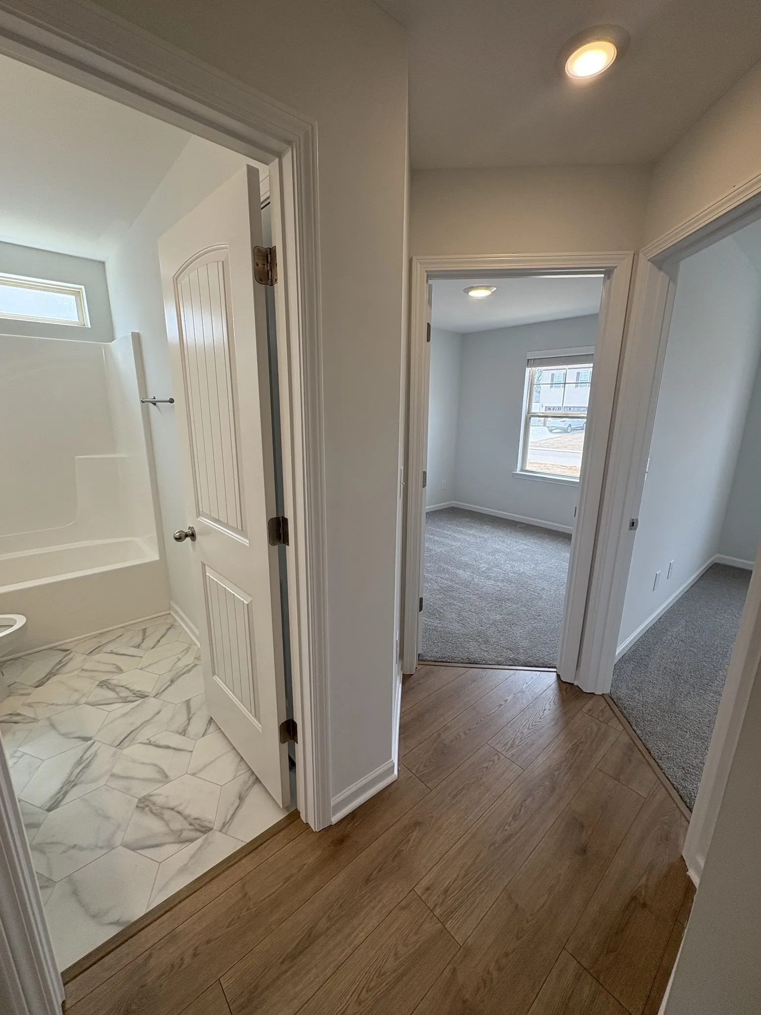 Plan(1335 Elevation ABC) Introducing a beautifully designed new construction home from our Cottage Collection—a one-level plan that perfectly balances comfort, functionality, and modern style. This 3-bedroom, 2-bath residence features an inviting open layout and a spacious 2-car garage. Step inside through a private foyer and experience the thoughtful flow of this home, where smartly zoned bedrooms provide privacy for everyone. The heart of the home is the great room, highlighted by soaring vaulted ceilings and an abundance of natural light, creating a warm and welcoming atmosphere ideal for both everyday living and entertaining. The kitchen is a chef’s delight, showcasing granite countertops, birch cabinetry, a tile backsplash, and sleek stainless steel appliances. Retreat to the primary suite featuring a tray ceiling, walk-in closet, and a serene en-suite bath complete with a 5-ft walk-in shower and dual vanities with marble tops. Smooth ceilings, window blinds, and elegant finishes throughout add the perfect finishing touch. For a limited time, enjoy $99 Closing Costs* including prepayment of homeowner’s insurance for one year, property tax escrows, origination fees, and discount points (as allowed). Offer available when using the builder’s preferred lender.