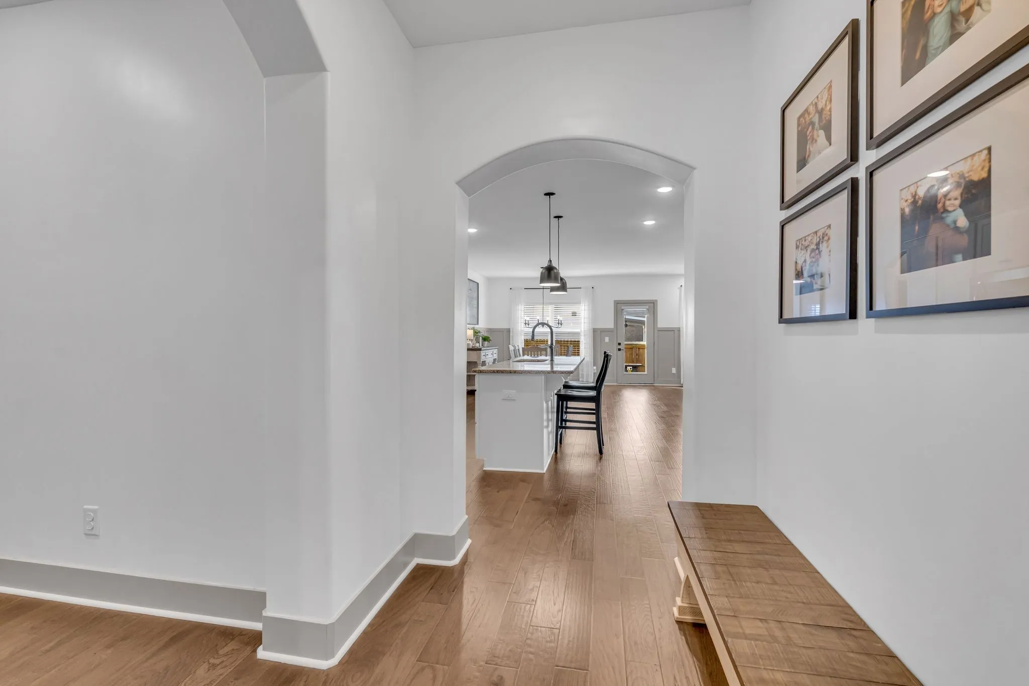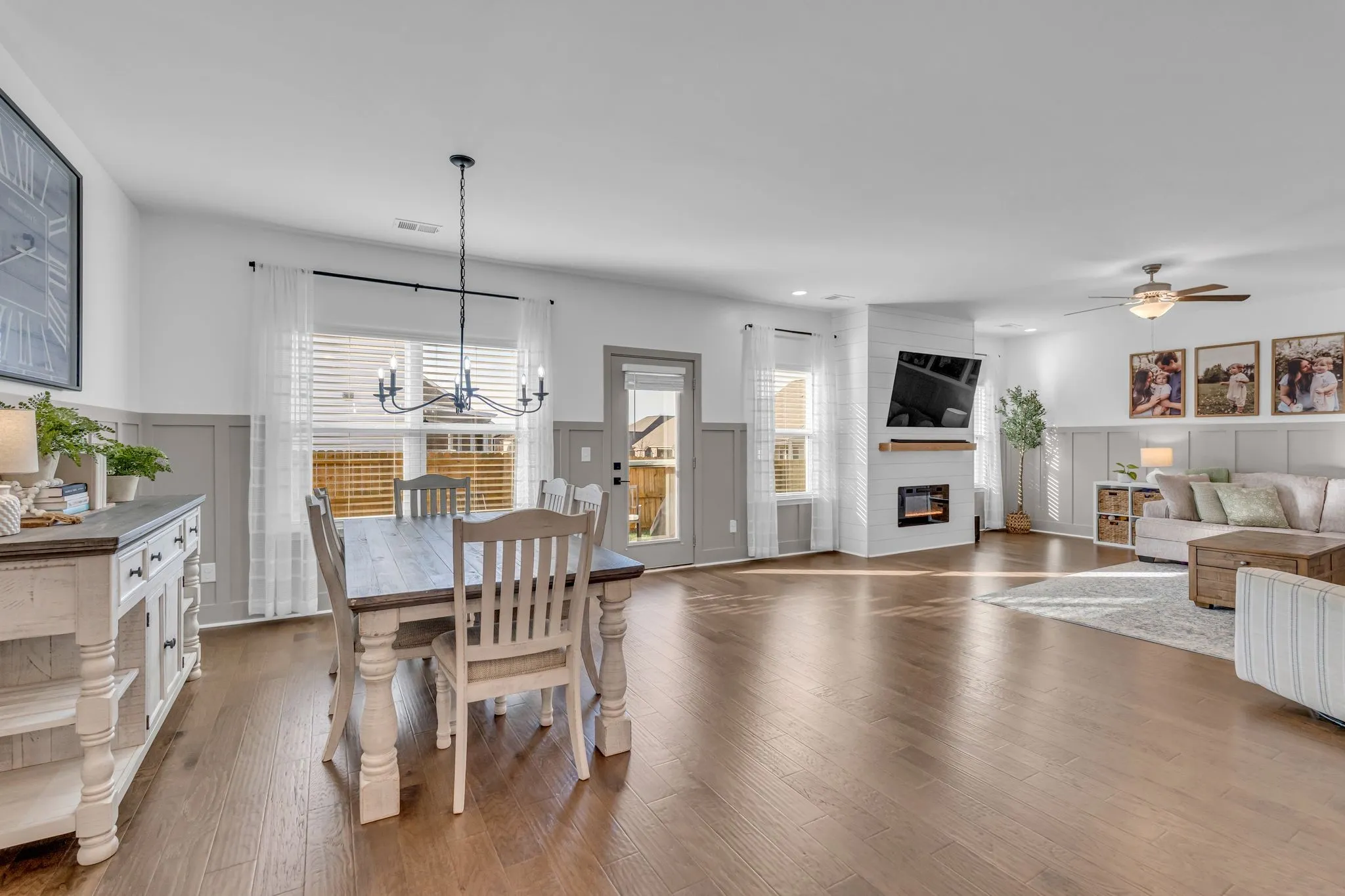Like new—only better. Step into a home with the feel of a professionally designed model, with thoughtful upgrades and a smart one-level layout that lives comfortably without wasted space. Custom wainscoting, a shiplap fireplace surround, matte black fixtures, additional LED lighting, a designer laundry room, and a chef’s kitchen with gas range and customized pantry elevate the interior. Arched openings, 9′ ceilings and beveled corners throughout add architectural interest, while wide-plank laminate flooring anchors the open living space. A versatile flex room works perfectly for a home office, library, or playroom. Outside, enjoy a flat quarter-acre corner lot with seasonal trees and a fully fenced backyard—ideal for play, gardening, or pets. Zoned for Sumner County schools, including Liberty Creek Middle and High. Move-in ready and loaded with upgrades—don’t miss it.