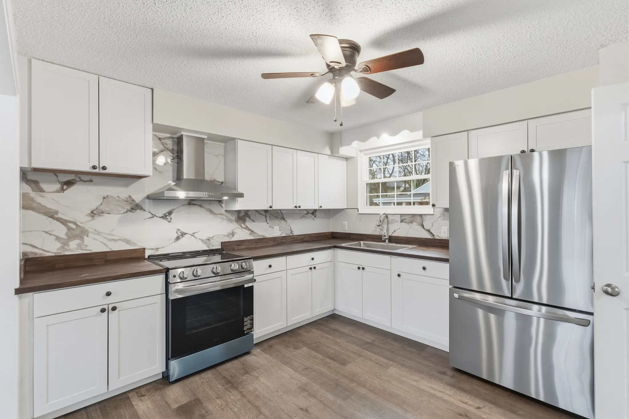 Stunning newly remodeled 3-bedroom, 2-bath home with an open-concept design perfect for modern living. The eat-in kitchen boasts new cabinetry, butcher block countertops, and new appliances. New LVP flooring throughout, fresh interior and exterior paint, and a brand-new roof add peace of mind. Converted garage provides additional living space, while the detached climate-controlled bonus room with sunroom offers endless possibilities. Enjoy the expansive backyard, fire pit patio, and oversized concrete driveway—perfect for entertaining and everyday living.