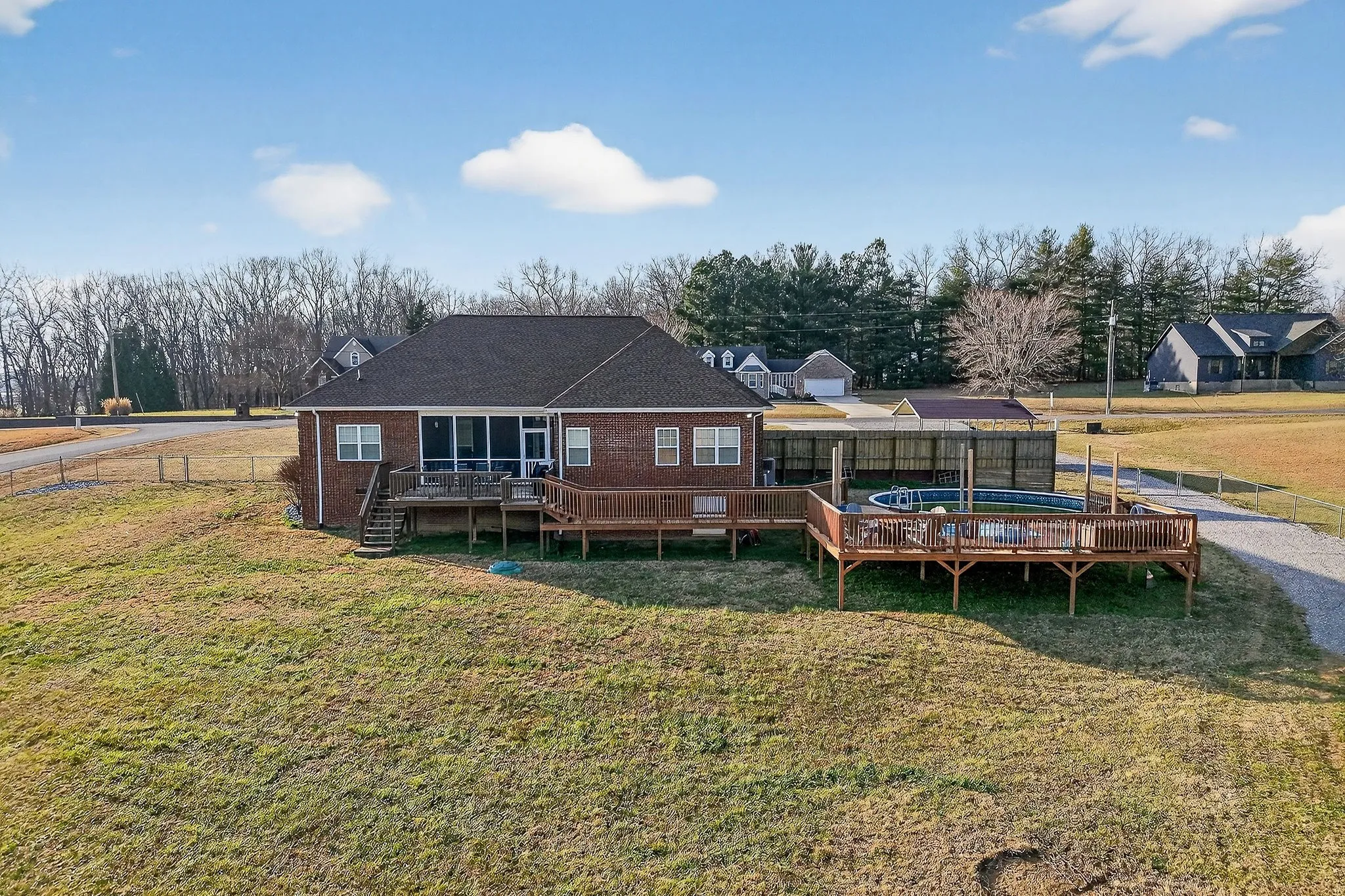 Step outside to enjoy a screened-in porch/ patio, and a huge deck perfect for entertaining, all overlooking an above-ground pool—ideal for summer gatherings and relaxing evenings.