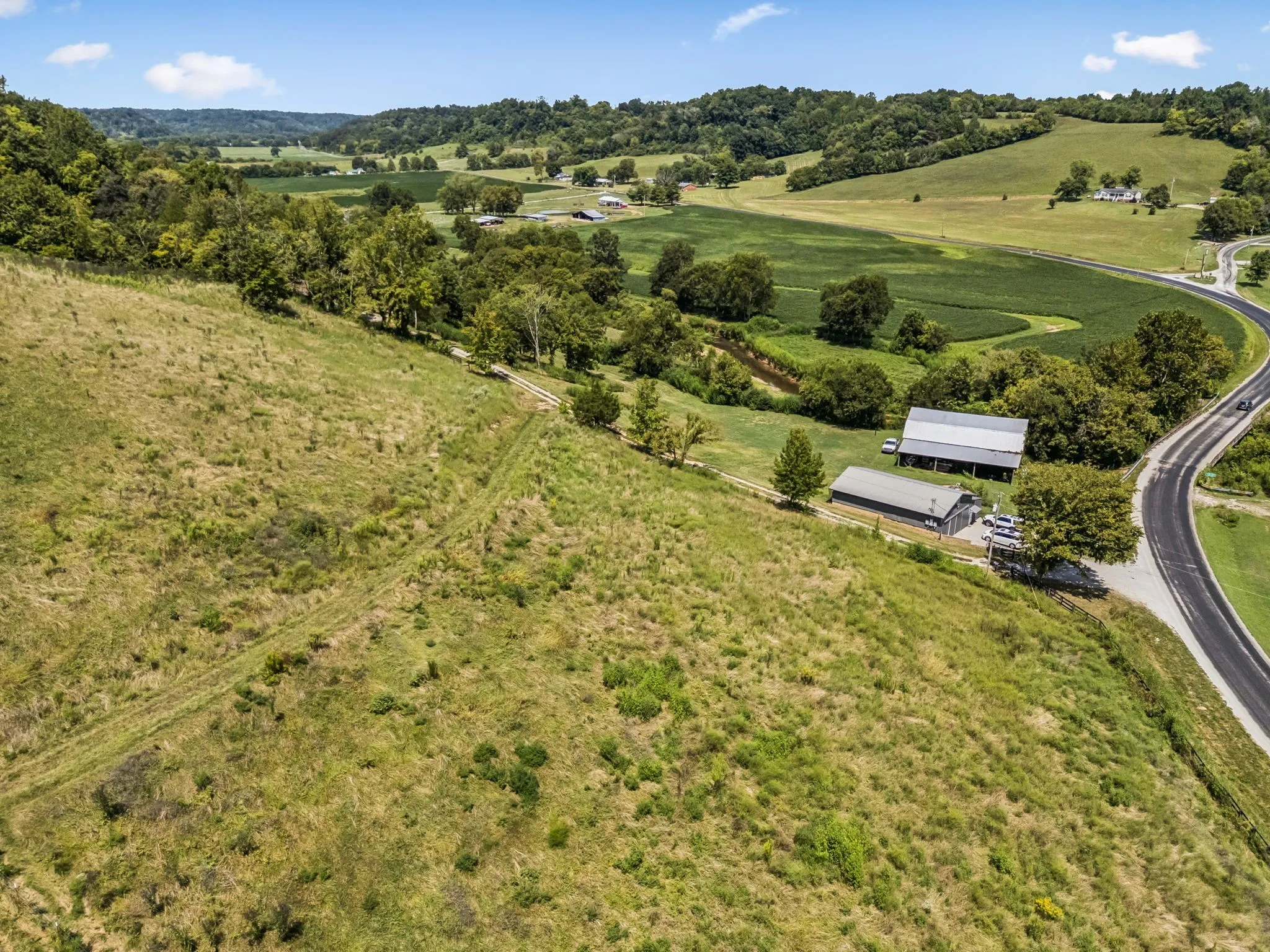 Million Dollars Views, a nice brick 3 bed/2 bath home overlooking the beautiful year around CREEK, updated kitchen / bathrooms, Kitchen appliances remain, water softener & reverse osmosis (both 4 yrs old), 2 car attached garage and nice pasture land are a few great features this property has to offer. It’s conveniently located between Pulaski and Lawrenceburg with easy access to Hwy 64. It’s fenced and crossed fenced (4 pasture areas) and they all have access to a watering station (well water). It has multiple additional building sites that could be great for multiple houses if needed. The top of the hill offers wonderful privacy, but plenty of wildlife to keep you company. Well water usage is available and currently on Minor Hill water. Newer Survey done. This farm is ready for you to come and enjoy the good life in the country.
