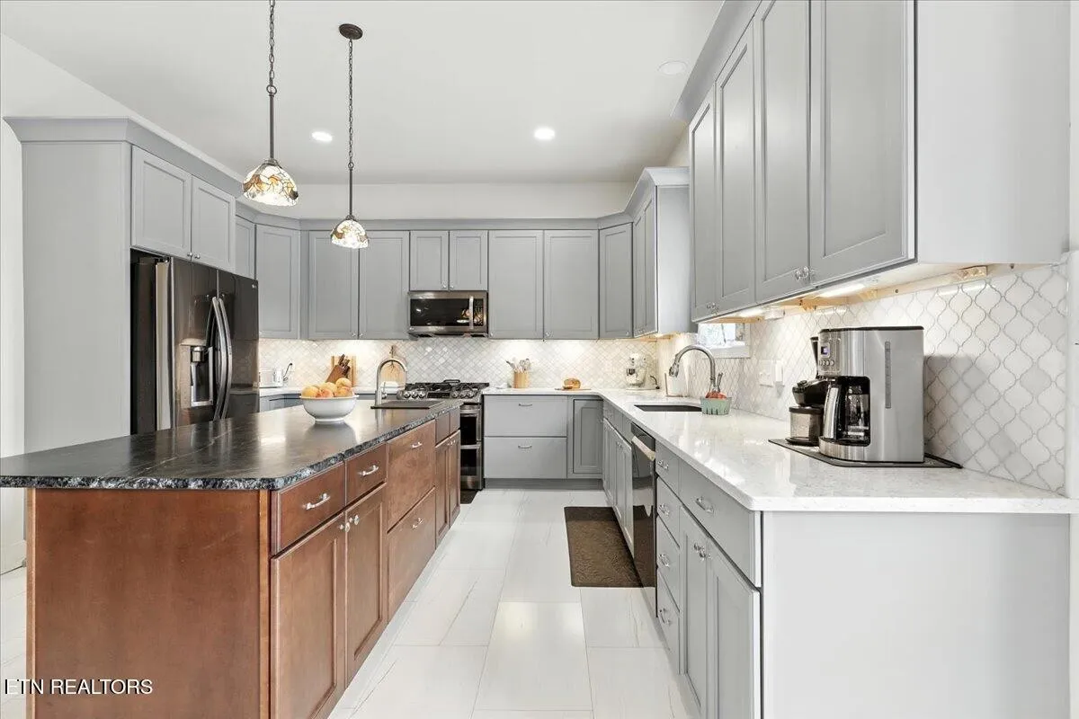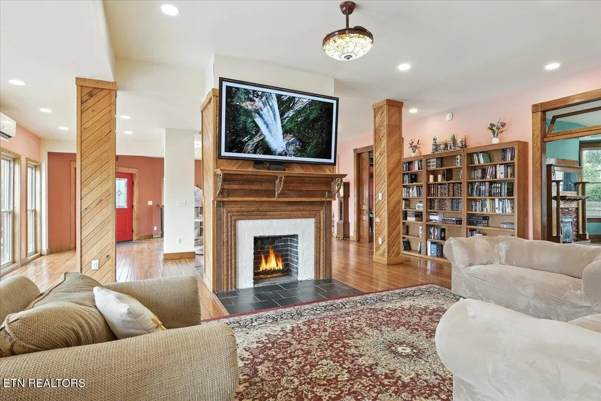 Nestled in the heart of downtown Maryville City, an area flourishing with both business and population growth, this historic property presents a rare and versatile opportunity. Originally built for local druggist Robert Tedford, it has been meticulously renovated and reimagined as a single-family residence, blending old-world craftsmanship with modern luxuries. Restored hardwood floors gleam with their original luster, original pocket doors glide effortlessly showcasing original ornate hardware, and period character is thoughtfully preserved throughout. The owner’s suite is a serene retreat featuring an exquisite copper soaking tub, double vanity with granite counters, an expansive marble-slab walk-in shower, and an enormous walk-in closet. The chef’s kitchen is equally impressive, boasting state-of-the-art stainless steel appliances, a hand-chiseled edge soapstone island, quartz perimeter counters, Grecian tile backsplash, 42” upper cabinetry, and a spacious walk-in pantry. The possibilities for use are truly boundless, with current office transition zoning, potential uses could include offices, boutiques, a coffee shop, brewery, salon, spa, bakery, apartments, or maintaining it as a stunning private residence (subject to city approval). The separate second-floor space, complete with a full bath and mini-kitchen, offers exceptional flexibility for an Airbnb (with City Approval), rental apartment, or private office. An additional 1,700(+/-) SF upstairs, already framed with stud walls and partial wiring/plumbing, awaits your creative vision, while the unfinished basement houses a two-car garage and extra storage. Extra parking is available at the rear, with potential overflow arrangements by the adjacent parking lot owned by another local business (subject to their written approval). This is a once-in-a-lifetime chance to own a piece of Maryville’s history, offering charm, character, and commercial potential, all for under $800,000.