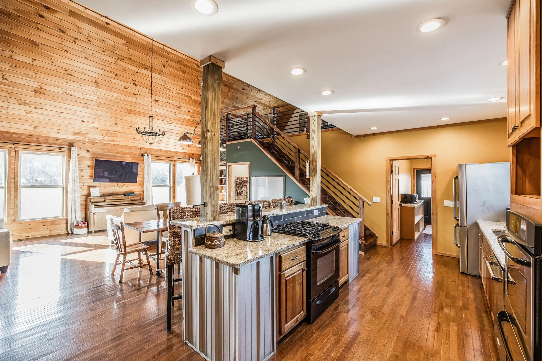 As soon as you walk in the front door, you’re greeted expansive vaulted ceilings, and the perfect space for entertaining. With 3 bedrooms and room for additional expansion, you’ll have all the room you need. Its perfectly nestled on 5 level acres with both pasture and wooded areas. With its signature rustic design and vaulted ceilings, the home blends timeless character with everyday comfort—including modern touches like stainless steel appliances and a layout built for easy living.