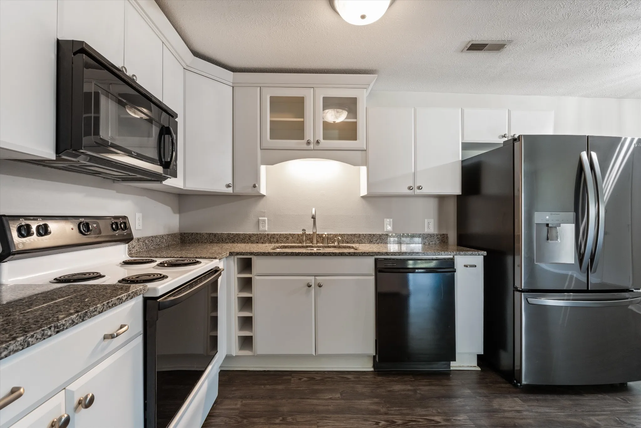 Top-floor unit with a recently renovated bathroom and a peaceful grassy view away from the street. Open floorplan, LV flooring, an updated kitchen with granite counters, a newly renovated bathroom, featuring new flooring, paint, and a new vanity. Washer/dryer remain. The second bedroom is perfect for a roommate, guest space, or home office. HOA covers water. Excellent investment property or first home — all within walking distance to shopping and restaurants!