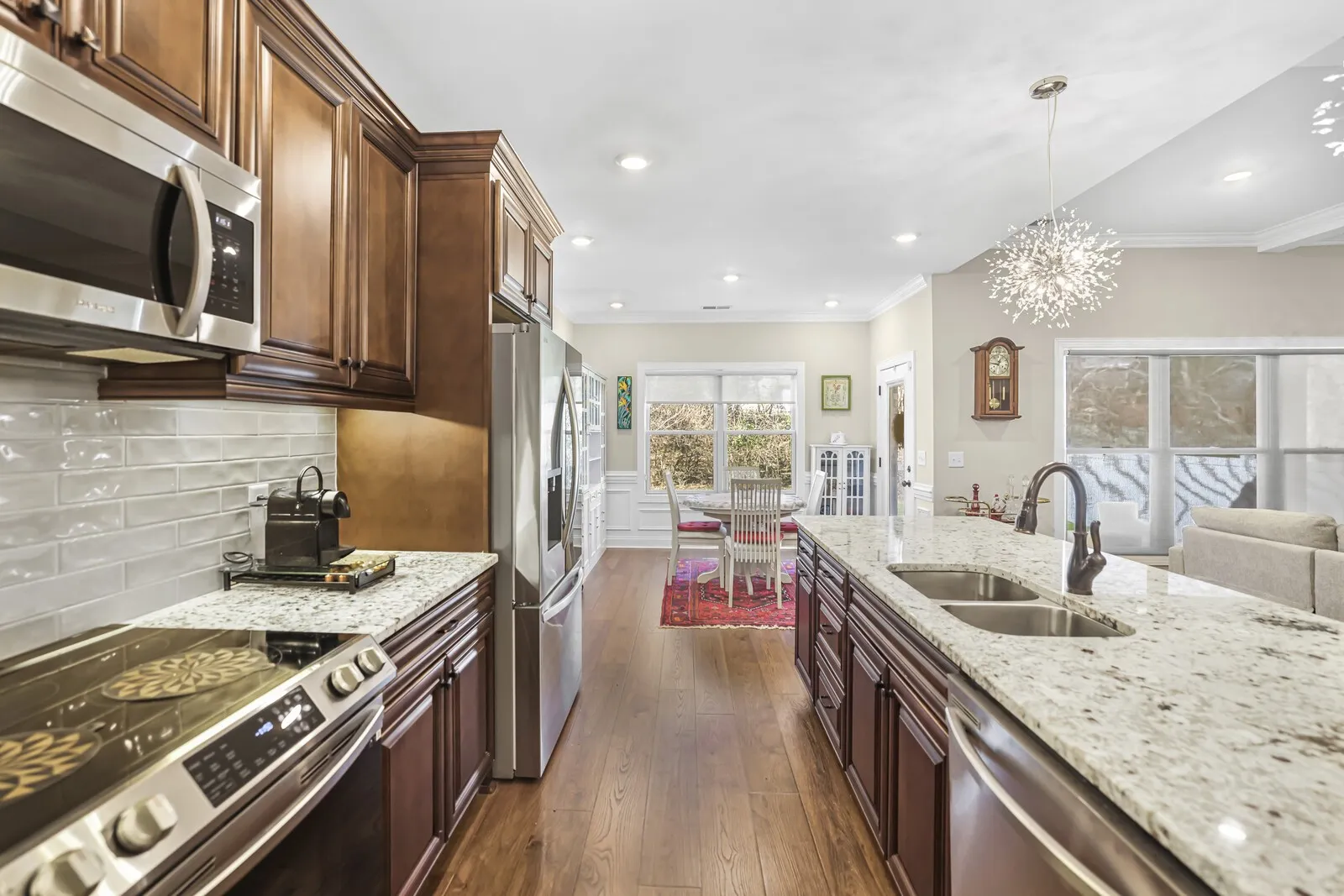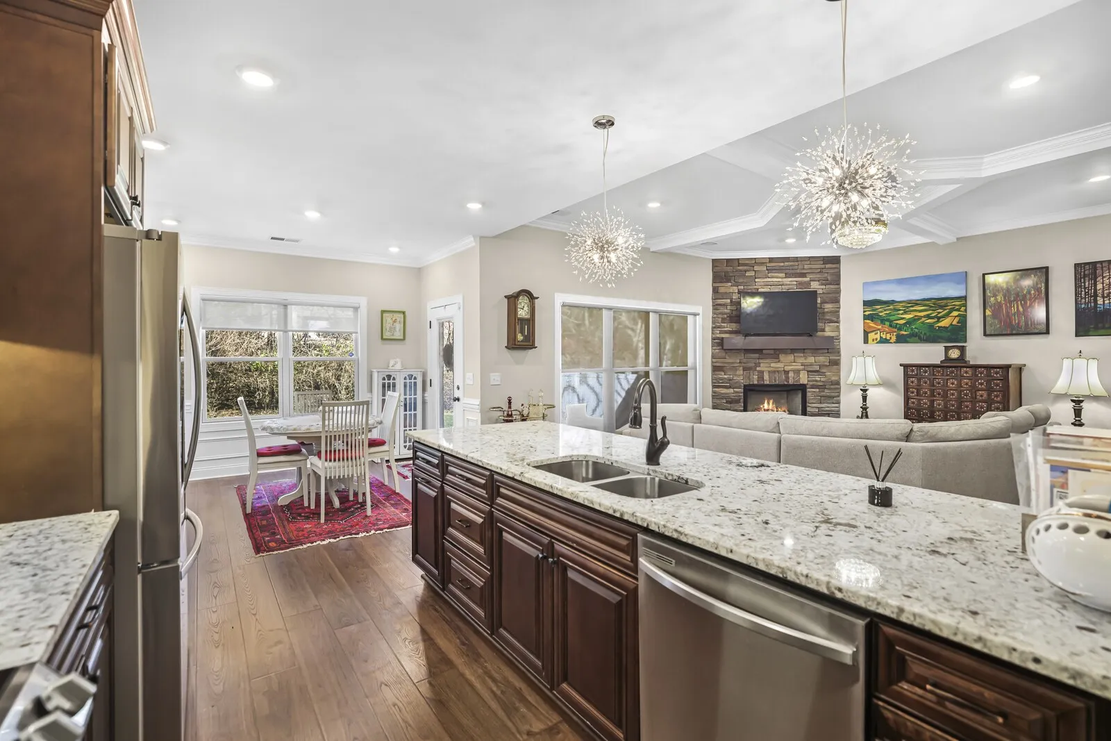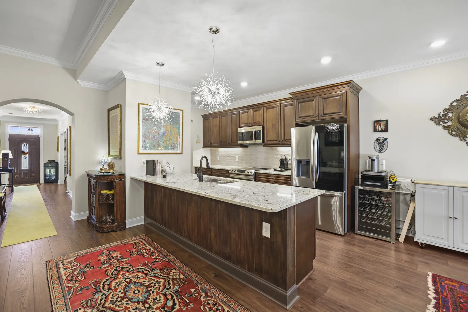 Up to 1% lender credit on the loan amount when buyer uses Seller’s Preferred Lender. Like new All-brick home nestled on a private, tree-lined lot offering peaceful surroundings and beautiful natural light throughout. The open-concept layout showcases premium upgrades, including a gas fireplace with custom stonework, automatic shades, large walk in attic area designer tile, granite countertops, and a thoughtfully curated lighting package. Meticulously crafted millwork adds character and sophistication throughout the home. The primary suite feels like a true retreat, complete with spa-like finishes and access to a covered porch—perfect for relaxing and unwinding. Ideally located with convenient access to Downtown Nashville, BNA Airport, Providence Shopping, and Percy Priest Lake, this home blends privacy, luxury, and everyday convenience.