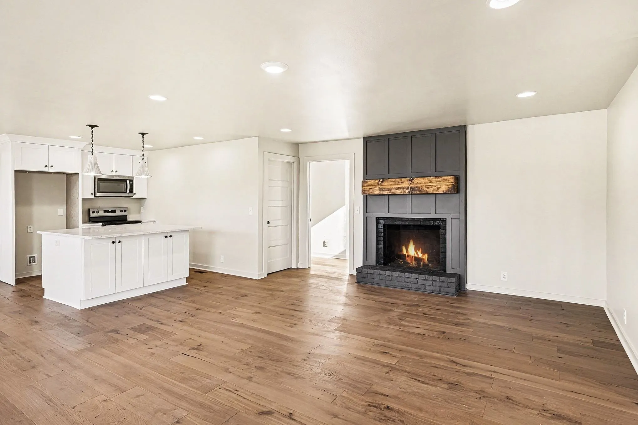 Beautifully renovated home offering flexibility, function, and peace of mind. Thoughtfully reimagined from top to bottom, this home features an open floor plan with a wood-burning fireplace, a second master suite with its own laundry hookups—perfect for an in-law suite or guest room—an oversized main laundry room, and a finished basement with a large bonus room providing additional living space for a media room, playroom, or office.\n