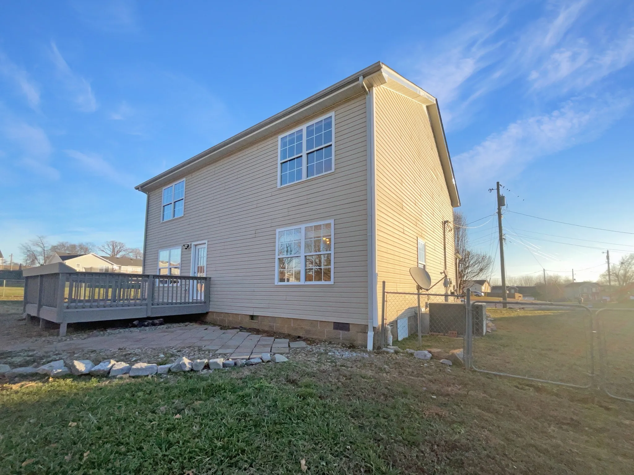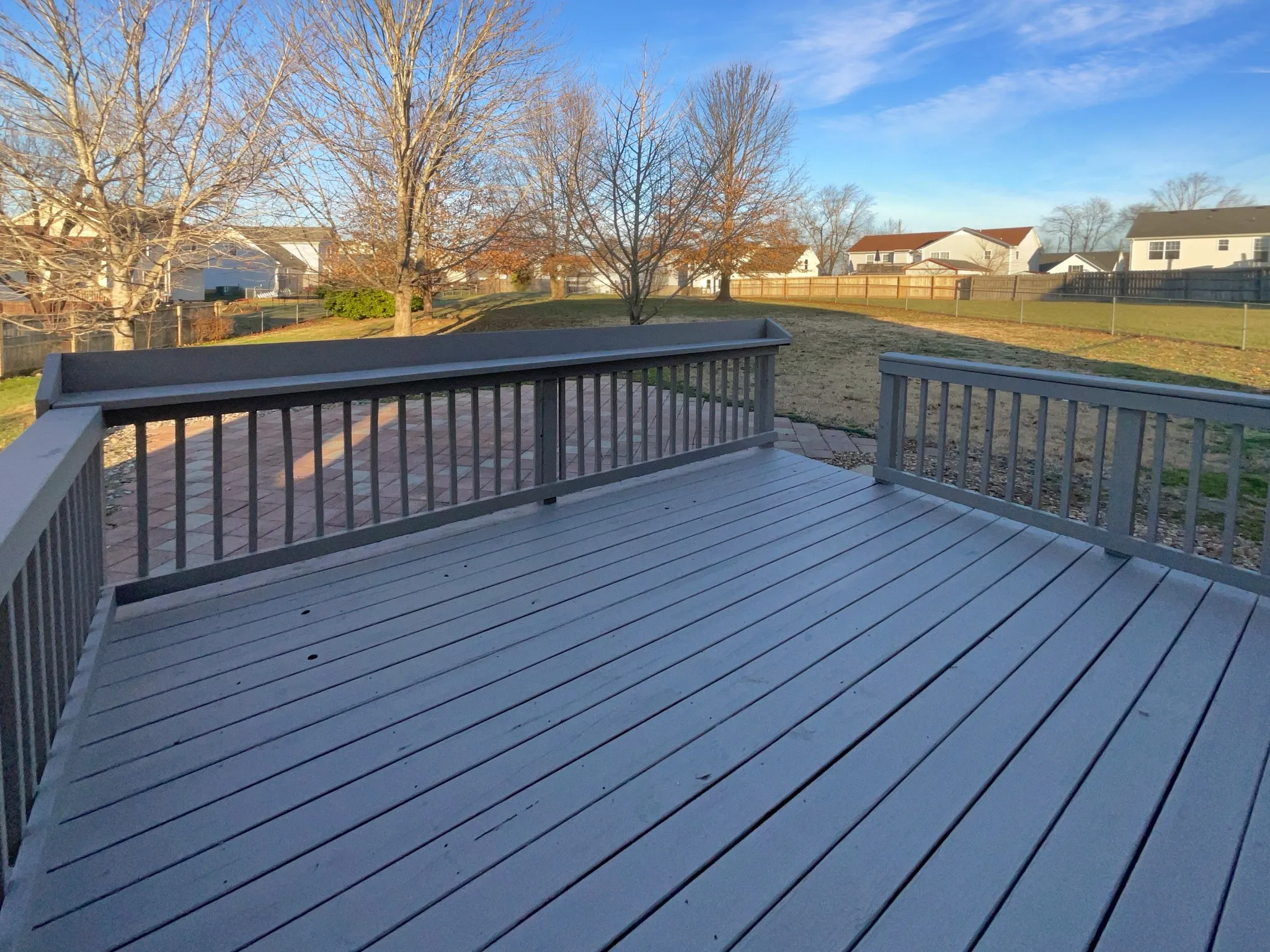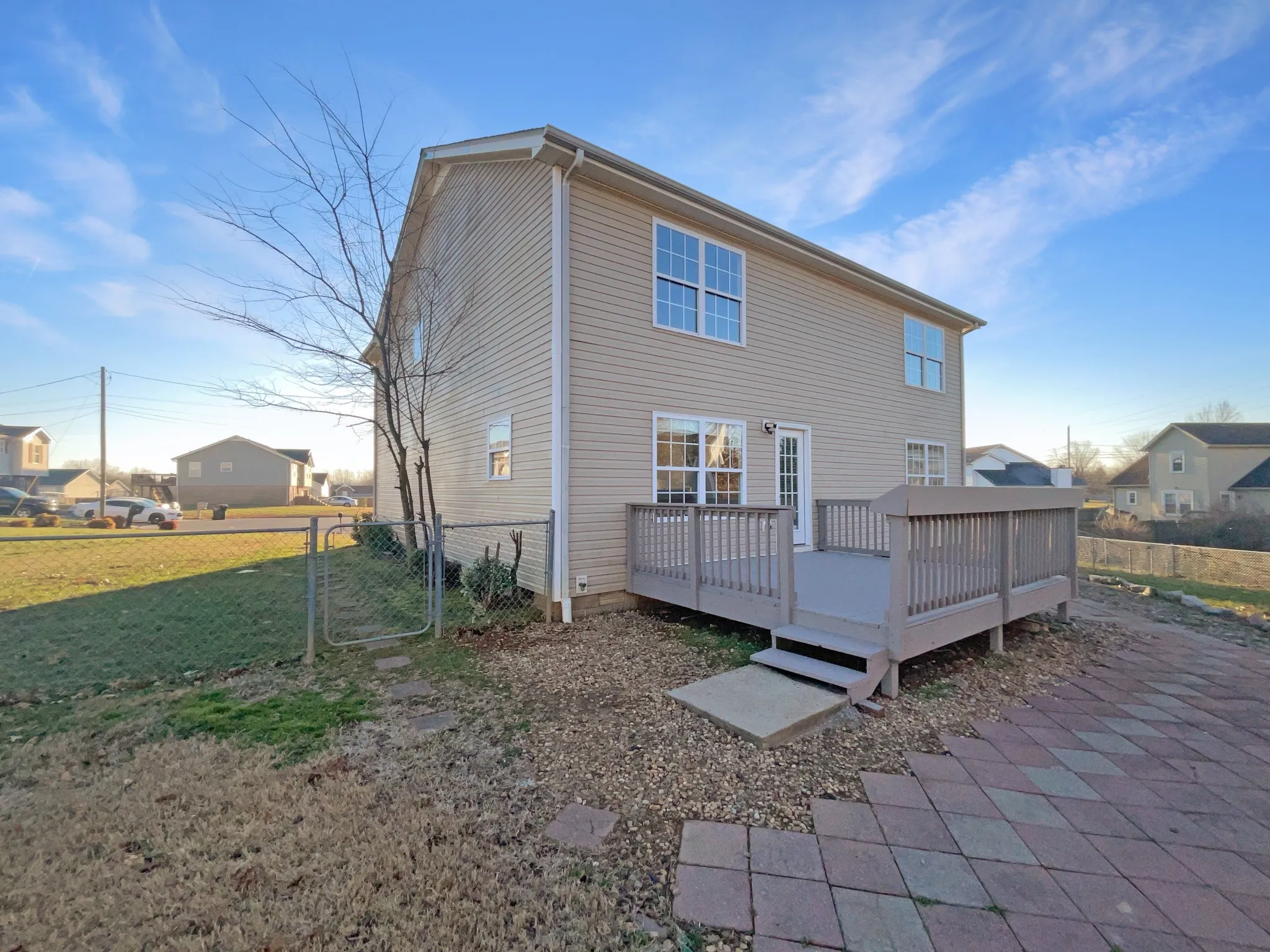 Enjoy outdoor living on the deck overlooking a privacy-fenced backyard, all tucked away