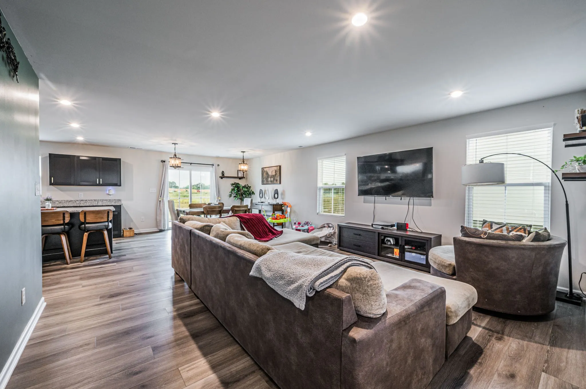 Welcome to 119 Amberleaf Circle! This stunning, 5 bedroom, 3 full bath home boasts over 2,500 square feet and is practically brand new being just built in early 2025! Features include a sitting room of the foyer, a large living room open to the dining area and kitchen, luxury vinyl plank flooring throughout the majority of the main floor and all bathrooms. The main floor has 1 bedroom and a full bathroom. Upstairs you will find a bonus room, 3 additional bedrooms a full bath with double vanity and a large primary suite with walk-in shower. This great home is located only minutes from Franklin, Kentucky and has easy access to I-65. Just a short 20 +/- mile drive to Bowling Green, Kentucky or 45 +/- miles to Nashville, Tennessee! This home has it all and is ready for its new owners! Call today for your private tour.