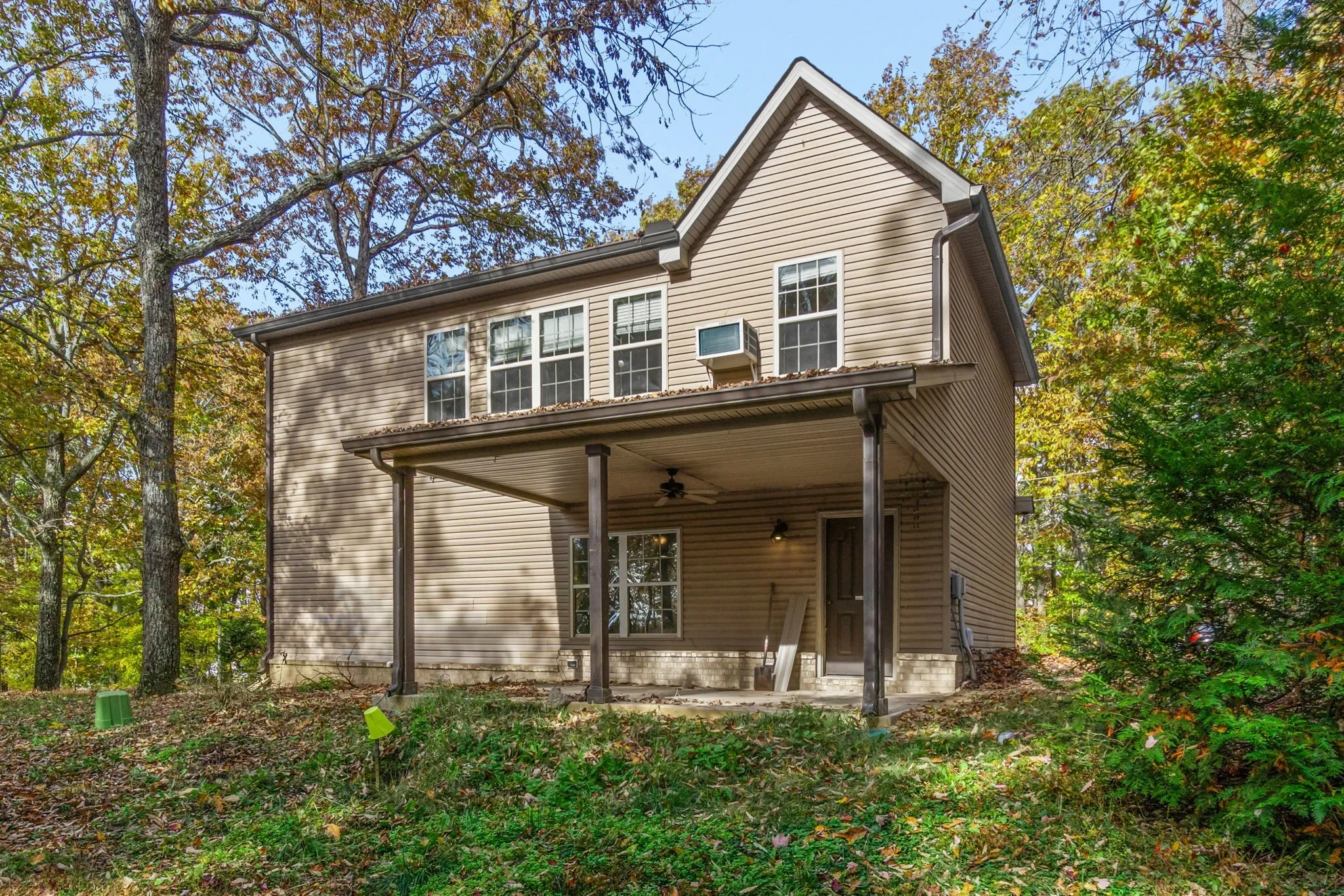 Great opportunity near Center Hill Lake! This home sits on a peaceful, wooded 0.47-acre lot with quick access to the community boat ramp. Open-concept design with vaulted ceilings, granite countertops, tiled bath, and modern flooring. Spacious rec room and primary suite on the lower level. Some finishing touches and repairs are needed—ideal for an investor or buyer looking to add value and make it their own. Selling as is.