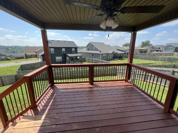 This beautiful home has beautiful views from its back covered deck. All 3 bedrooms upstairs with a bonus room that could be used as a 4th bedroom. Downstairs is an open concept living area with granite countertops in the kitchen with an island that awaits your personalized stools for eating and gatherings. Large pantry and an office area if you choose. A half bath is downstairs for convenience for yourself and is away from the kitchen. Propane tank stays for cozy nights next to the fireplace. Doesn’t not need electricity to run. Minutes to Fort Campbell and 10 min to downtown.