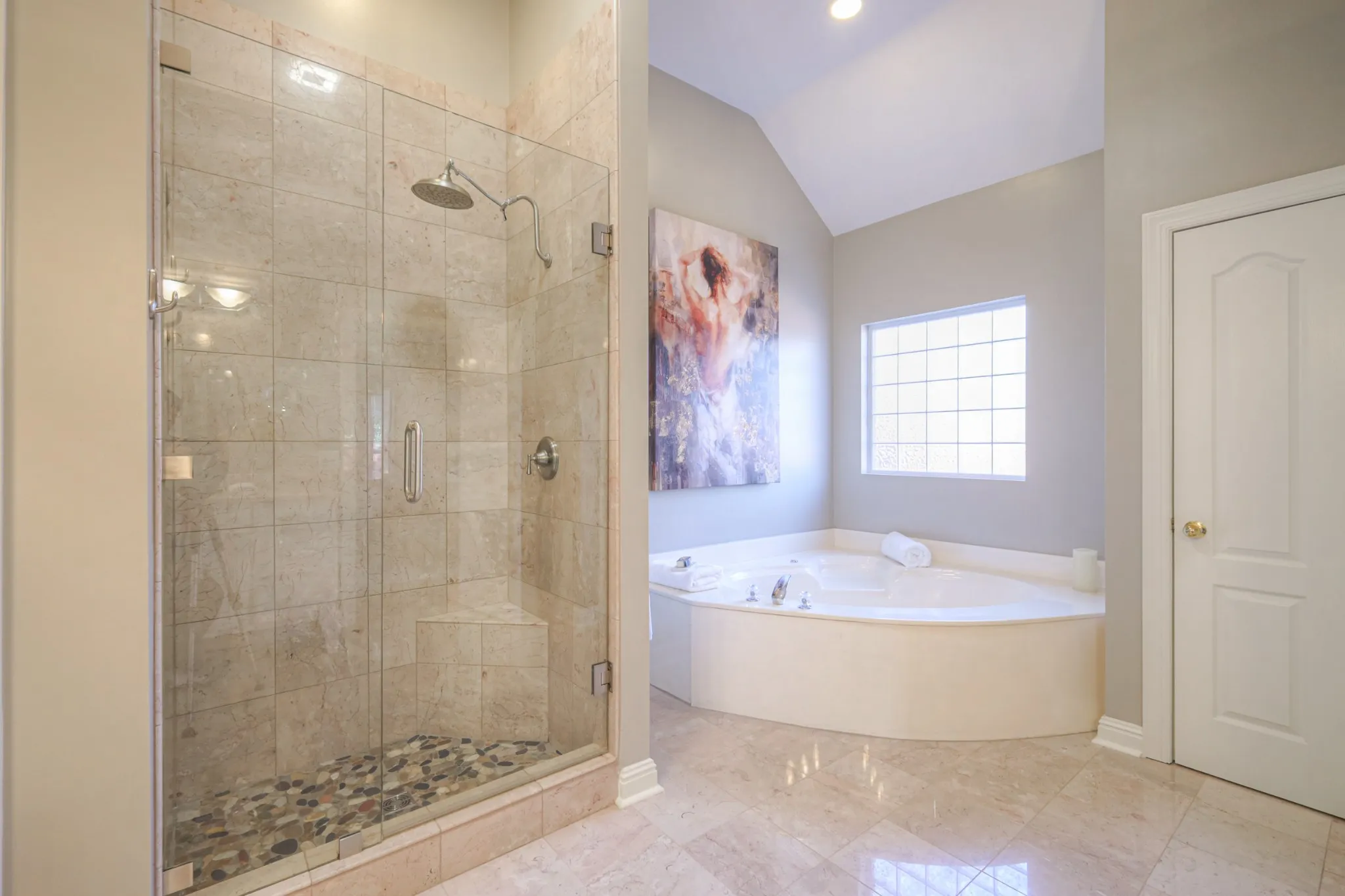 The kitchen shines with painted cabinets and updated appliances, while the bathrooms have been fully refreshed with marble floors and showers, new vanities, and a stunning updated primary bath. The home offers effortless one-level living with modern upgrades and timeless appeal.