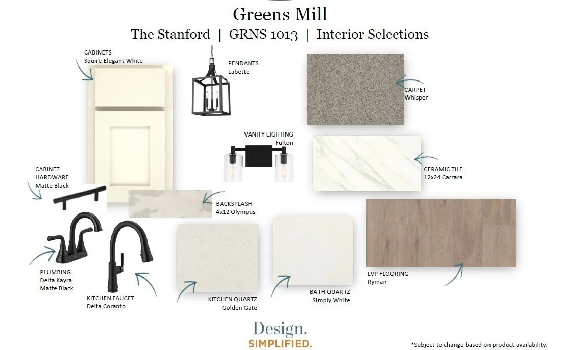 Welcome to The Landing at Greens Mill, Columbia's most beautiful new community! This Stanford plan boasts 4 bedrooms and 3 full bathrooms! The owner's suite is a dream, with raised ceilings in the owner's bathroom, an oversized tile shower, lots of natural light, and a huge walk-in closet. Enjoy entertaining in this open concept home with a beautiful kitchen, large great room with an electric fireplace, and a large covered rear patio. This home features luxury vinyl plank floors through out the main level living, quartz countertops in the kitchen and bathrooms, ceramic tile floors in the owner's bathroom, laundry, and secondary bathrooms, and so much more! For a limited time only enjoy $15,000 towards closing costs PLUS Blinds and Refrigerator included, with use of preferred lender and title company. Terms and conditions apply.\n