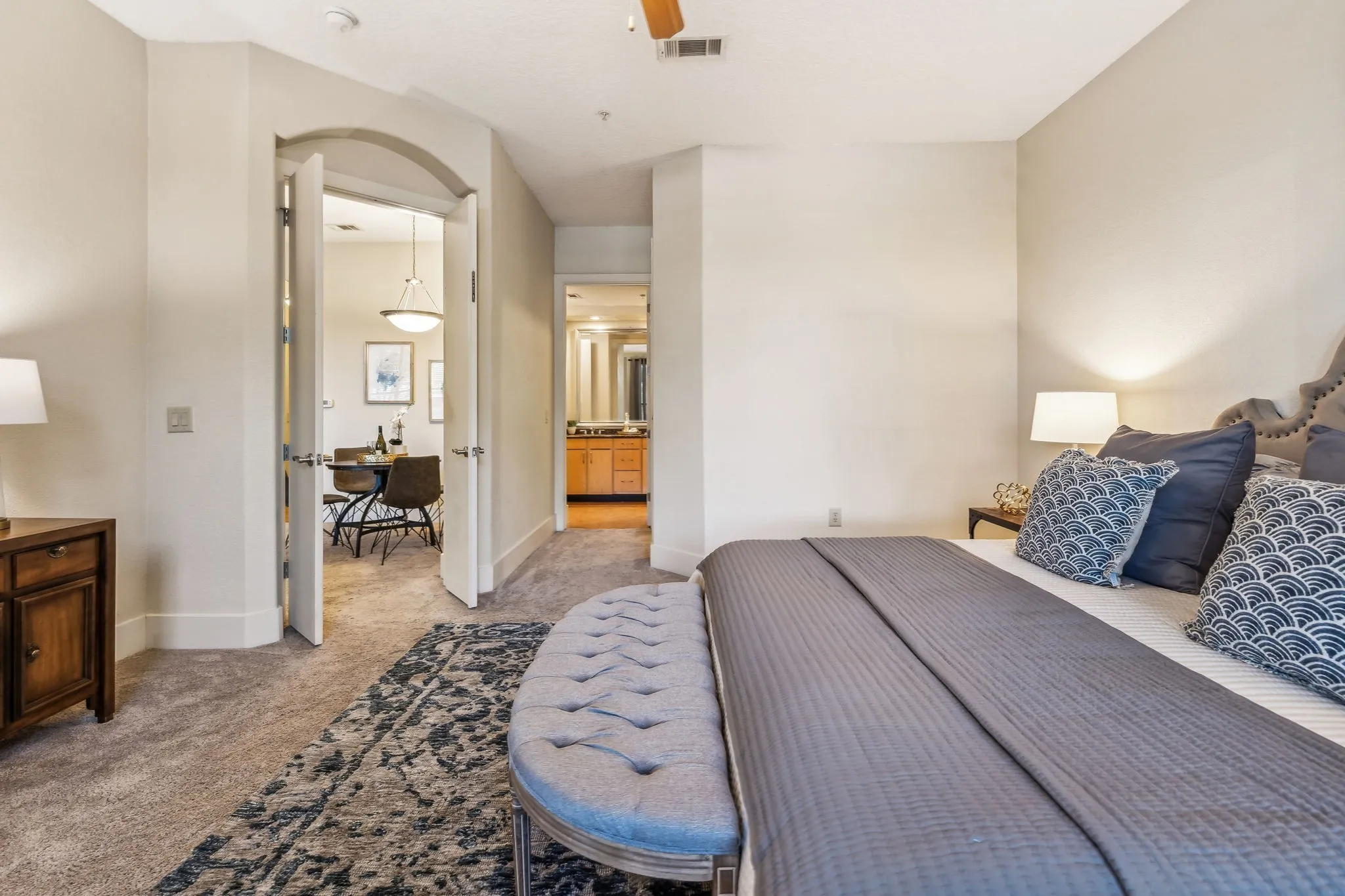 Best-Priced Condo in The Enclave! This beautiful first-floor residence offers true no-step living in one of Nashville’s most exclusive gated communities—ideal for effortless, lock-and-leave convenience. Move-in ready and thoughtfully designed, the home features soaring 10’ ceilings, custom built-ins, and an open layout that feels both spacious and refined. The well-appointed kitchen includes granite countertops, stainless-steel appliances, a wine refrigerator, and a built-in desk perfect for working from home or everyday organization.