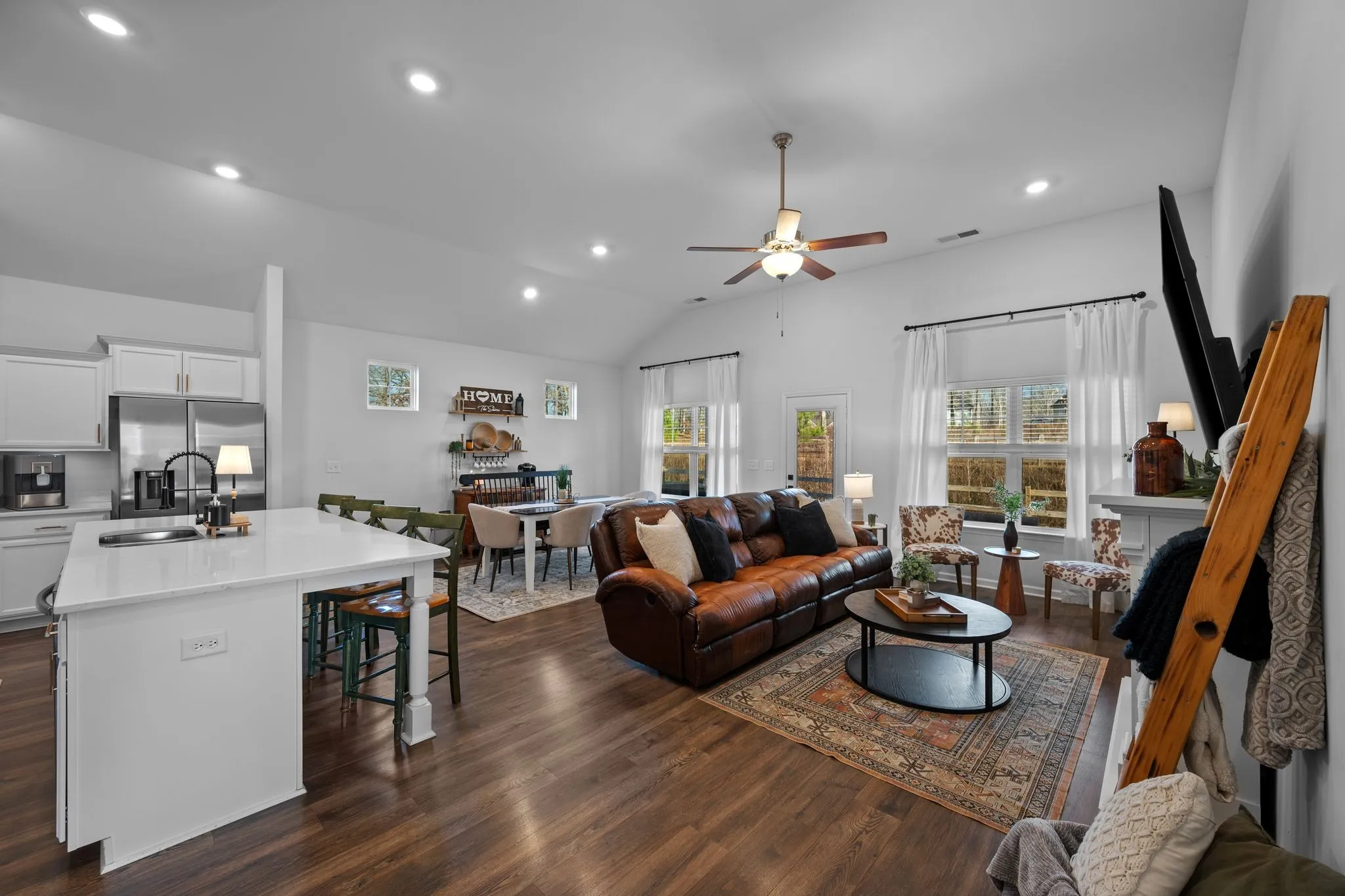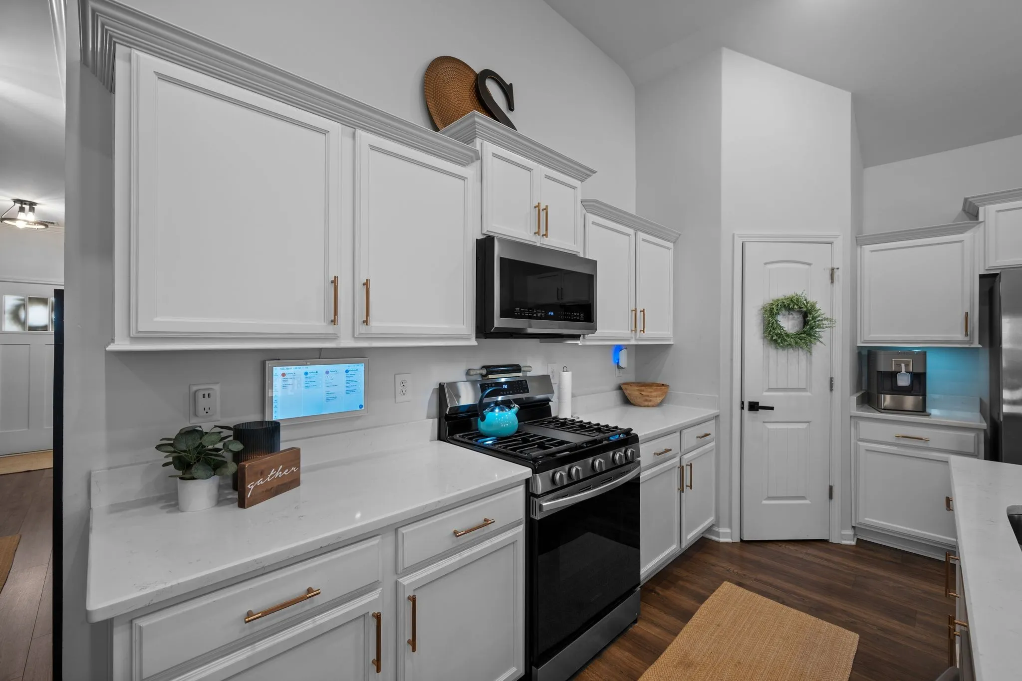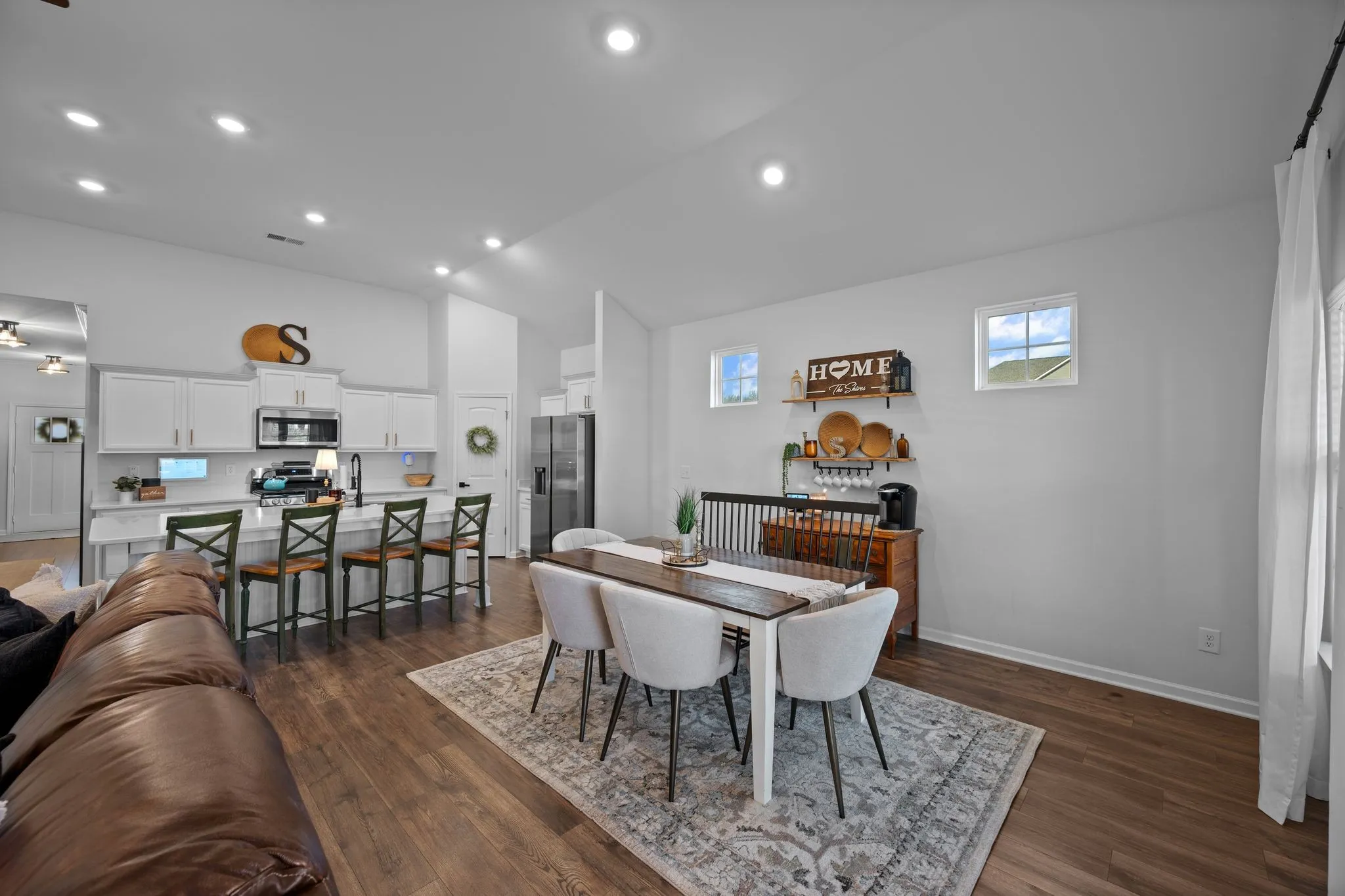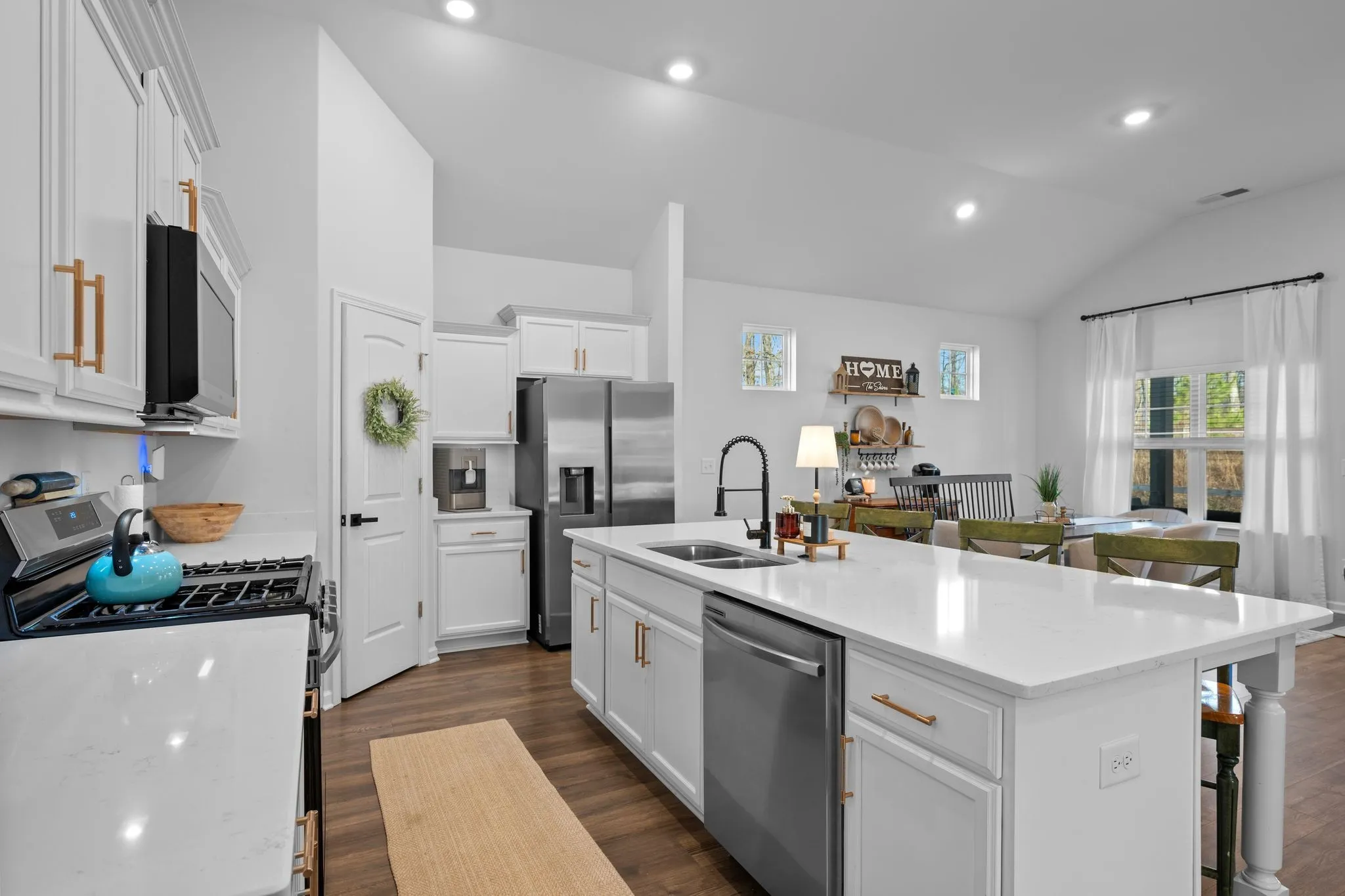 Light-filled living spaces flow seamlessly into the kitchen and dining areas, making it ideal for both everyday living and entertaining. A true laundry room offers both beauty and function, complete with gorgeous wood shelving—a well-designed space you’ll actually enjoy using.