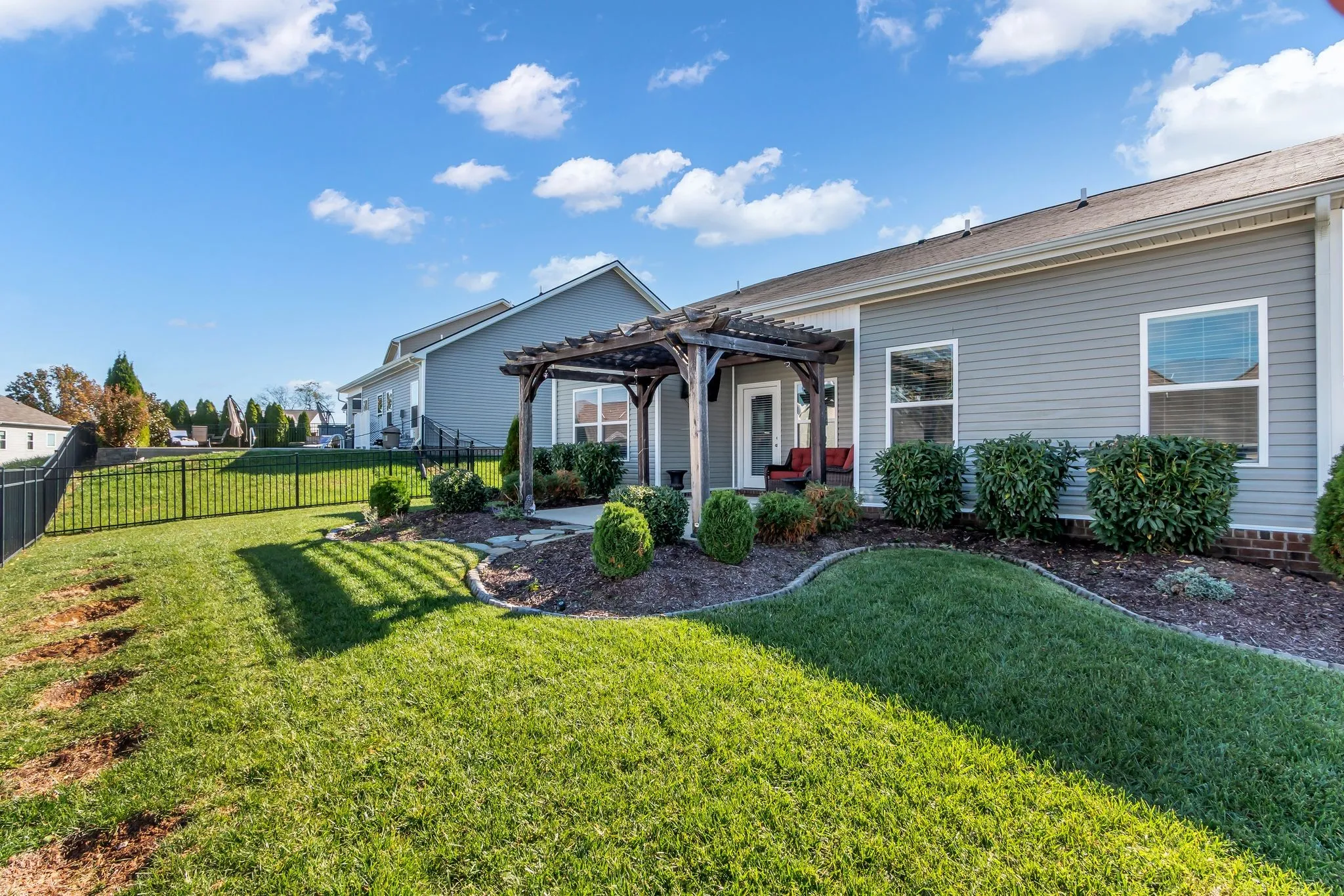 Enjoy outdoor living in the fenced backyard, complete with a covered back patio and pergola, ideal for relaxing evenings or family gatherings. An irrigation system helps keep the yard lush and low-maintenance. Additional highlights include a 2-car garage and thoughtful layout designed for modern living.