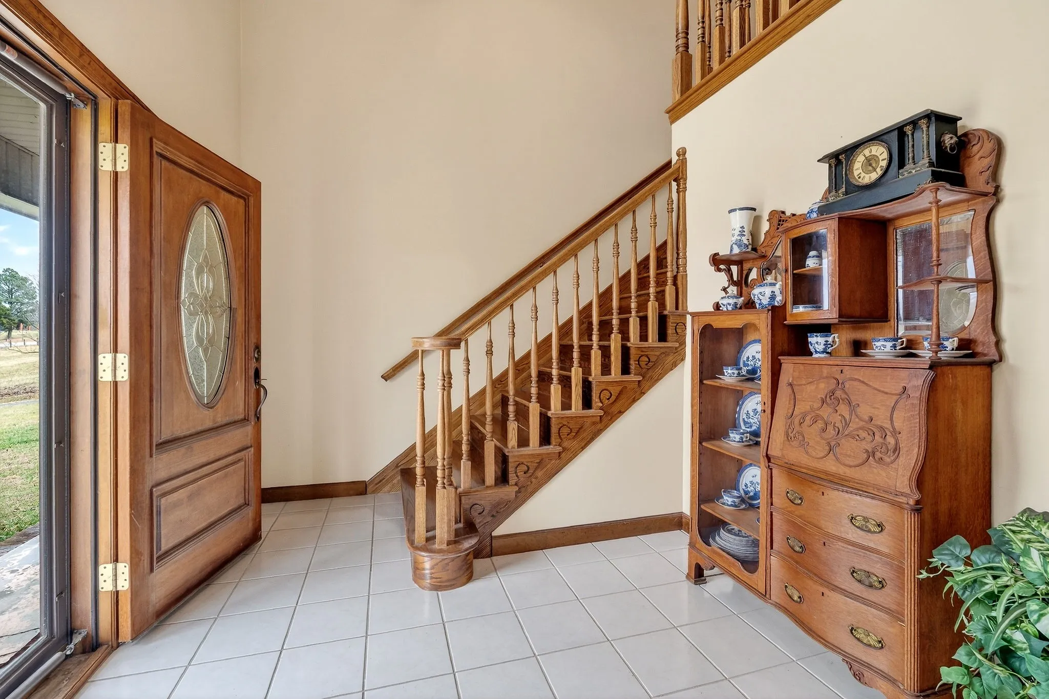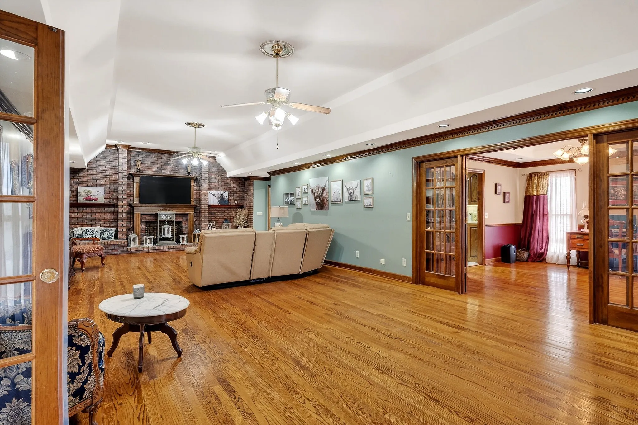 This brick home offers a spacious and functional layout with quality finishes throughout, including real hardwood floors, tile flooring, and beautiful wood cabinetry and trim. A large entryway opens into the main living areas, creating a welcoming first impression and an easy flow throughout the home.