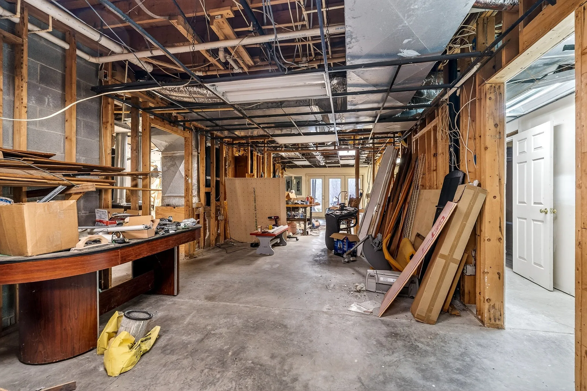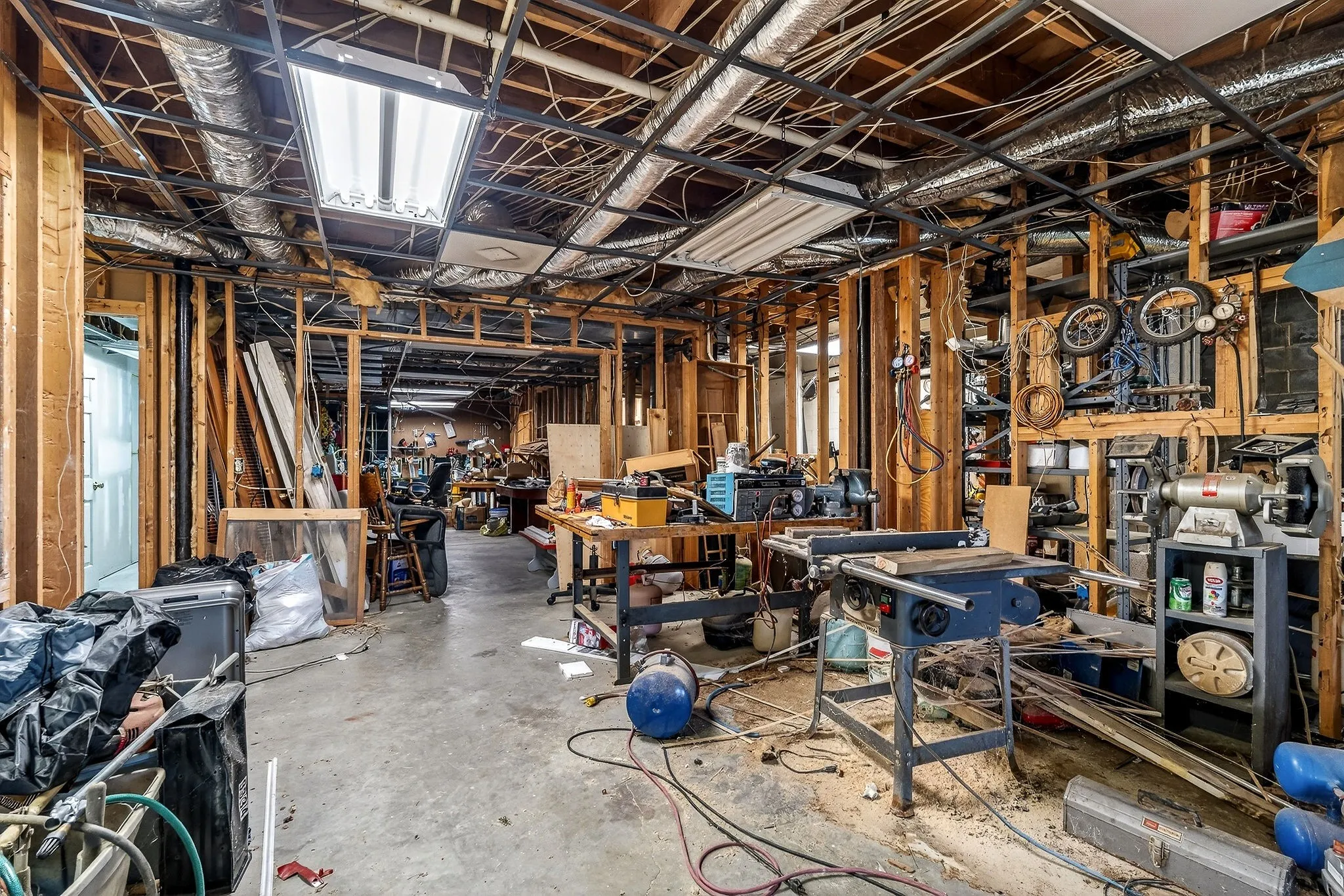 The basement offers both finished and unfinished space. There is a finished apartment in the basement with a partially finished living area, which includes a bedroom, full bathroom, and kitchen. The remaining basement area is unfinished, with framed walls already in place, providing excellent potential for future expansion, storage, or additional living areas. The basement also includes two additional full bathrooms that are partially finished.