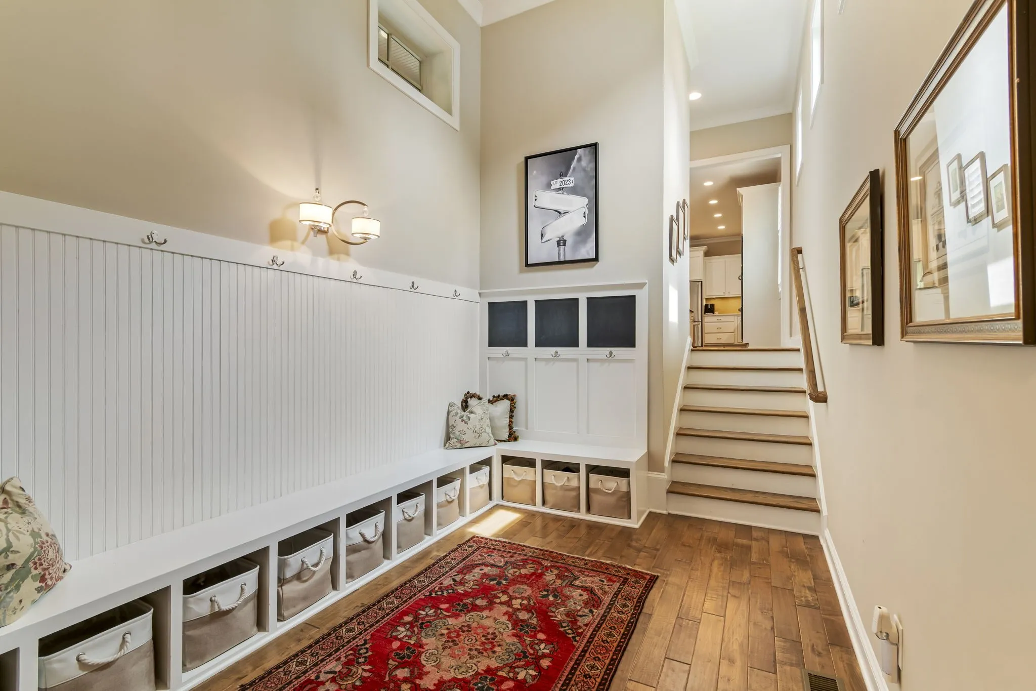 A generous drop-zone with abundant cubby storage adds everyday convenience. A main-level home office and full bath offer flexibility. The second level hosts the primary suite, along with three additional bedrooms thoughtfully arranged for privacy and function: two share a Jack-and-Jill bath, and one enjoys its own en suite.