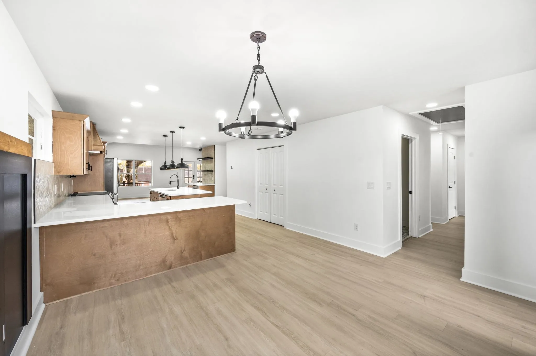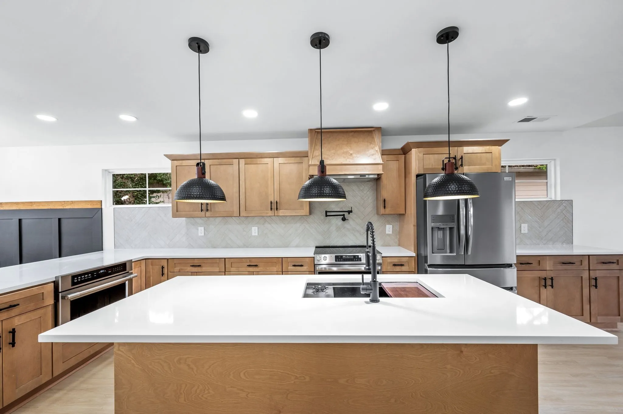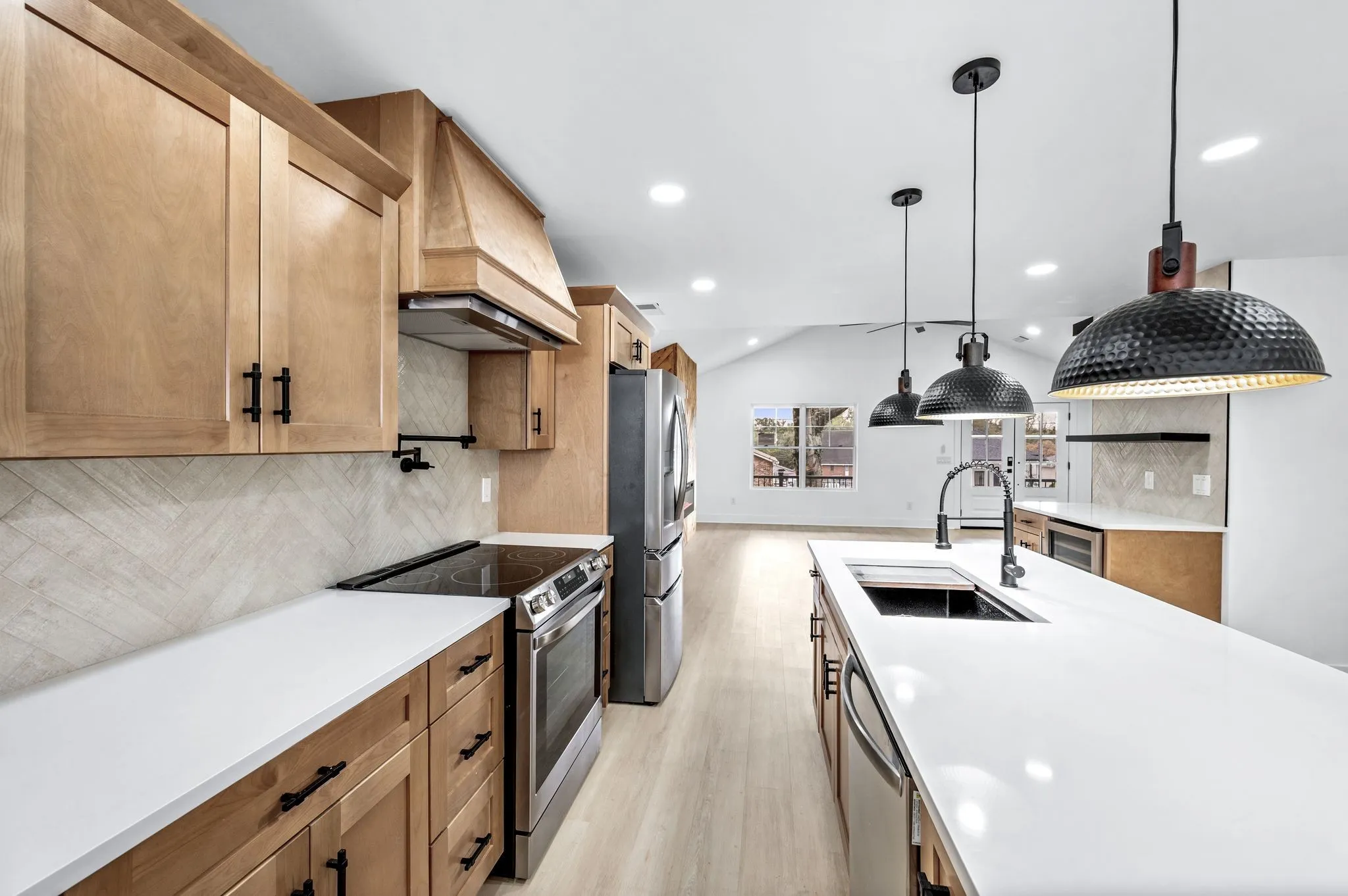 AMAZING Price & value! Urban Core, Single Level, Stylish, Built Ins, Work from home dream, home has private rear entry off alley into new 2 car garage. Location is outstanding, Experience the local artisan fare within the Buchanan Arts District, enjoy restaurants such as Slim and Husky’s, Tio Fun, + Bag Lady’s Fry Joint within walking distance! This home greets you with large french door entry leading into this unique space, w/ your personal drop zone with Bench and Built In Storage to catch your Keys, Jacket, Boots + Hat… Sit by the warm fire framed out beautifully in the chevron style built in unit. This kitchen means business, with a coffee station, large island w/ seating, plus additional seating at peninsula, gorgeous cabinetry, custom hood vent, and gorgeous quartz counters… this space offers room to prepare meals for gatherings or enjoy a quiet night in. Retire for the evening into a spacious owner’s suite with walk in closet, private bath featuring custom tile, double vanity, glass shower, and more…