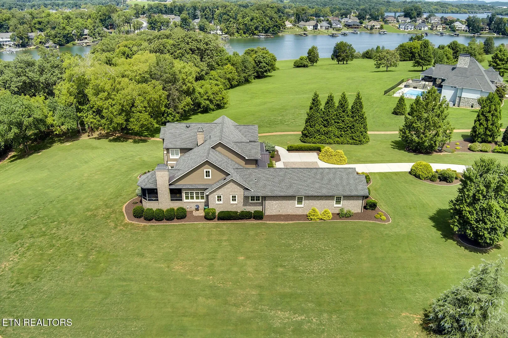 Massive main channel views abound in this Jim Weaver waterfront craftsman style home, located in the beautiful GATED community of Thunder Pointe! Water view has recently been opened up for maximum views. Custom boat house has never been used.. Sellers never used it or the boat lift. 4592 sq ft on two levels ( 2853 on main level, 1739 on upper level) guarantees privacy while allowing ample space for guests. Have hobbies? An 820 ft climate controlled workshop awaits downstairs.. A chef’s kitchen boasts ample storage and top end appliances. The master on main gives guests plenty of space upstairs, including a kitchenette and living room. Storage abounds throughout. An oversized staircase gives the home a grand and spacious feel. Practical aspects include a geo thermal heat system, keeping the energy bills surprisingly low. Located on two acres, the home offers easy access to the fixed covered boat dock with electric lift, placed on over an unusually abundant amount of shoreline. Dive off the dock and go for a swim, or take family and friends on your boat to a nearby waterfront restaurant for dinner. This lifestyle can be yours. Make your appointment today and get started