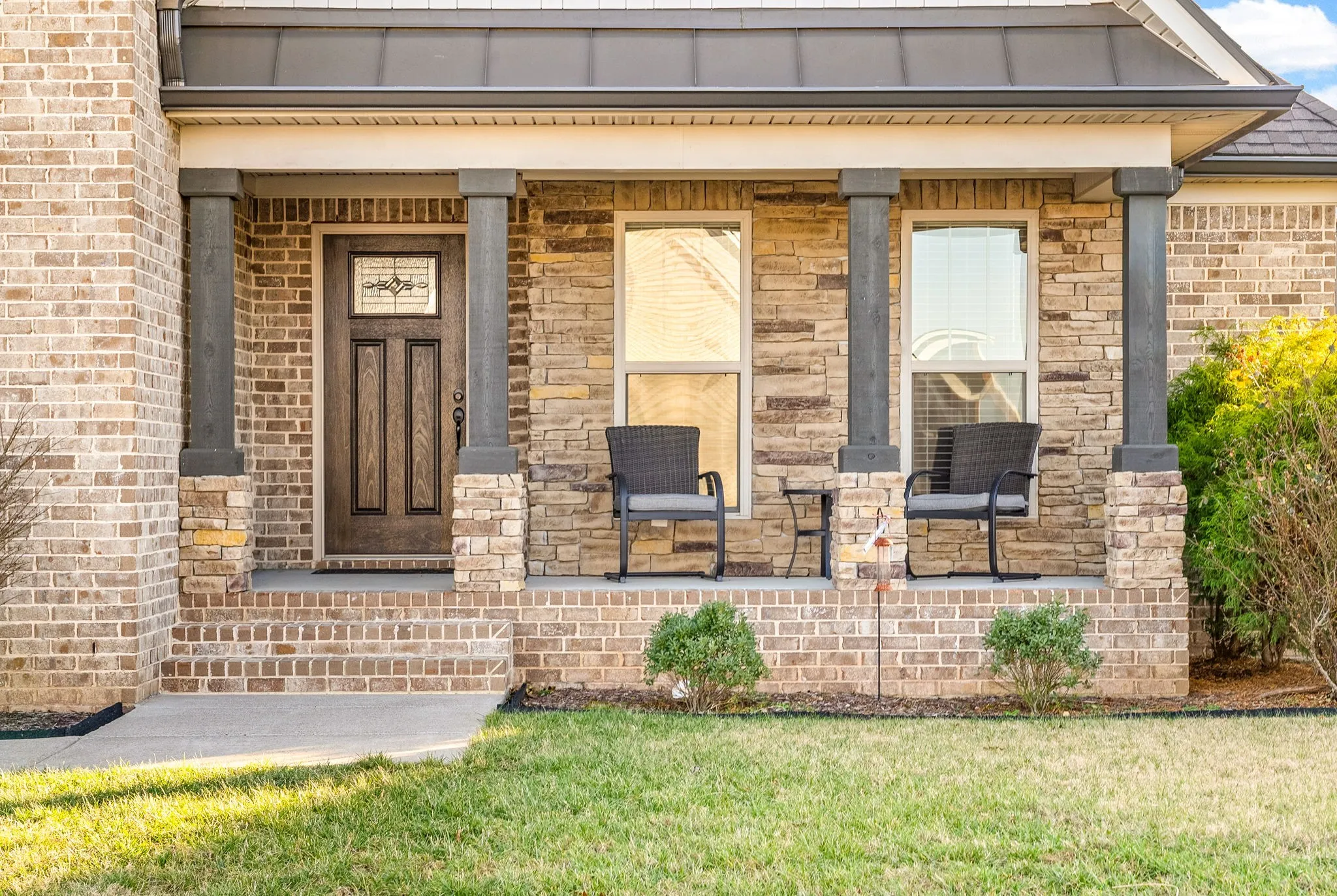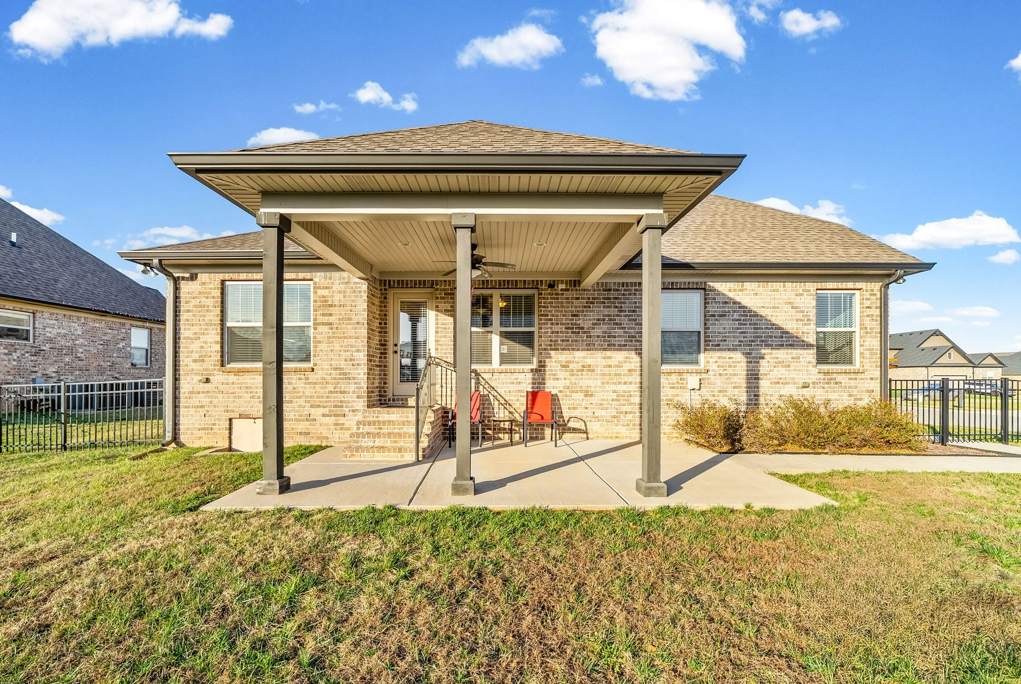 Beautiful custom-built home in Clarksville featuring 3 bedrooms plus a dedicated office. Highlights include custom cabinetry, granite countertops, stainless steel appliances, tile backsplash, and under-cabinet lighting. The primary bath offers granite finishes and a tiled shower. Abundant hardwood and tile flooring throughout. Refrigerator and range included. Enjoy outdoor living on the covered patio.