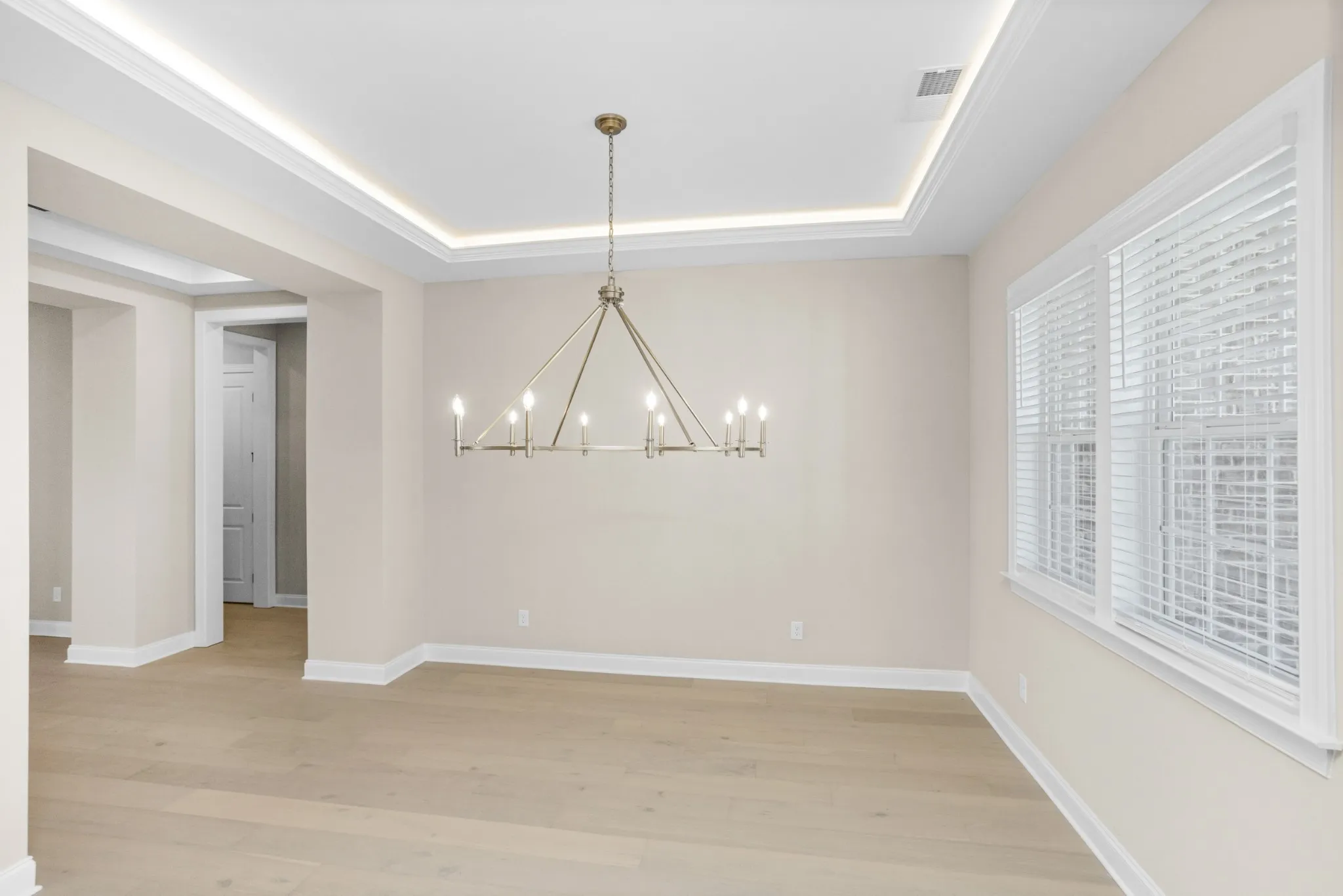 The main level features soaring ceilings, hardwood floors, and a wide entry that flows past a grand formal dining room—ideal for holiday dinners. Two guest suites with a Jack and Jill bath welcome visitors, while the private primary suite offers a spa-like retreat with convenient laundry access.