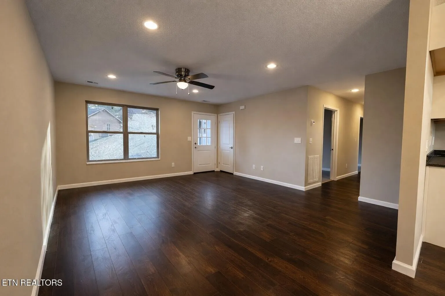 Inside, the home features separate, well-defined living spaces, creating comfort and privacy throughout. Hardwood flooring runs through the kitchen, great room, hallway, and bedrooms, adding warmth and character, while low-maintenance LVP flooring in the bathrooms provides durability and easy care.