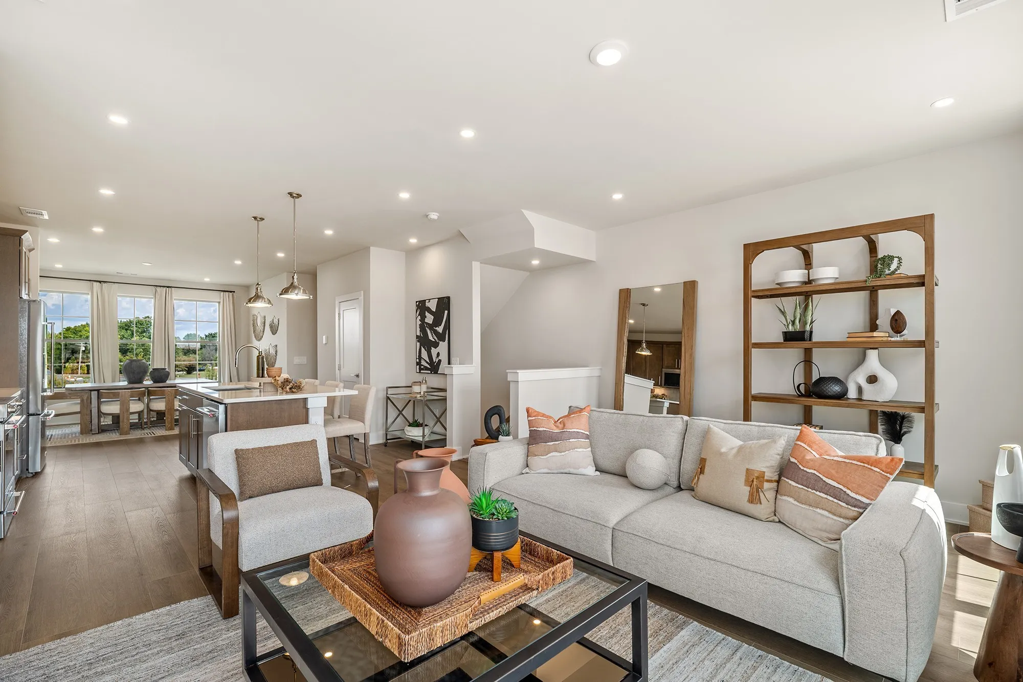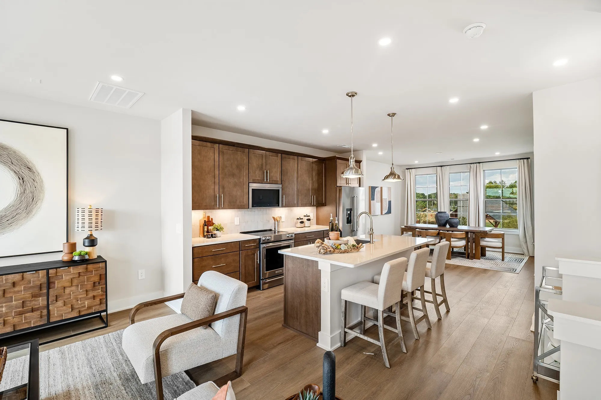 The Yellowwood Townhome boasts a desirable blend of luxury and style with a dynamic three-level floor plan. A charming foyer leads to the first floor guest suite and attached 2-car Garage. On the second floor you will find the main living space, highlighted by a spacious great room and dining room that overlooks the well-appointed kitchen, enhanced with ample counter and cabinet space, a pantry, and a large center island with breakfast bar. Choose between the standard island or opt for the alternate kitchen island which offers additional cabinet and countertop space. The primary bedroom suite is tucked away on the third floor, featuring dual walk-in closets and an exquisite primary bath with dual sinks, a large walk-in tile shower, and a private water closet. Also on the third floor, you have an additional large bedroom suite. Additional features include a powder room on the second floor, bedroom-level laundry, and extra storage throughout.