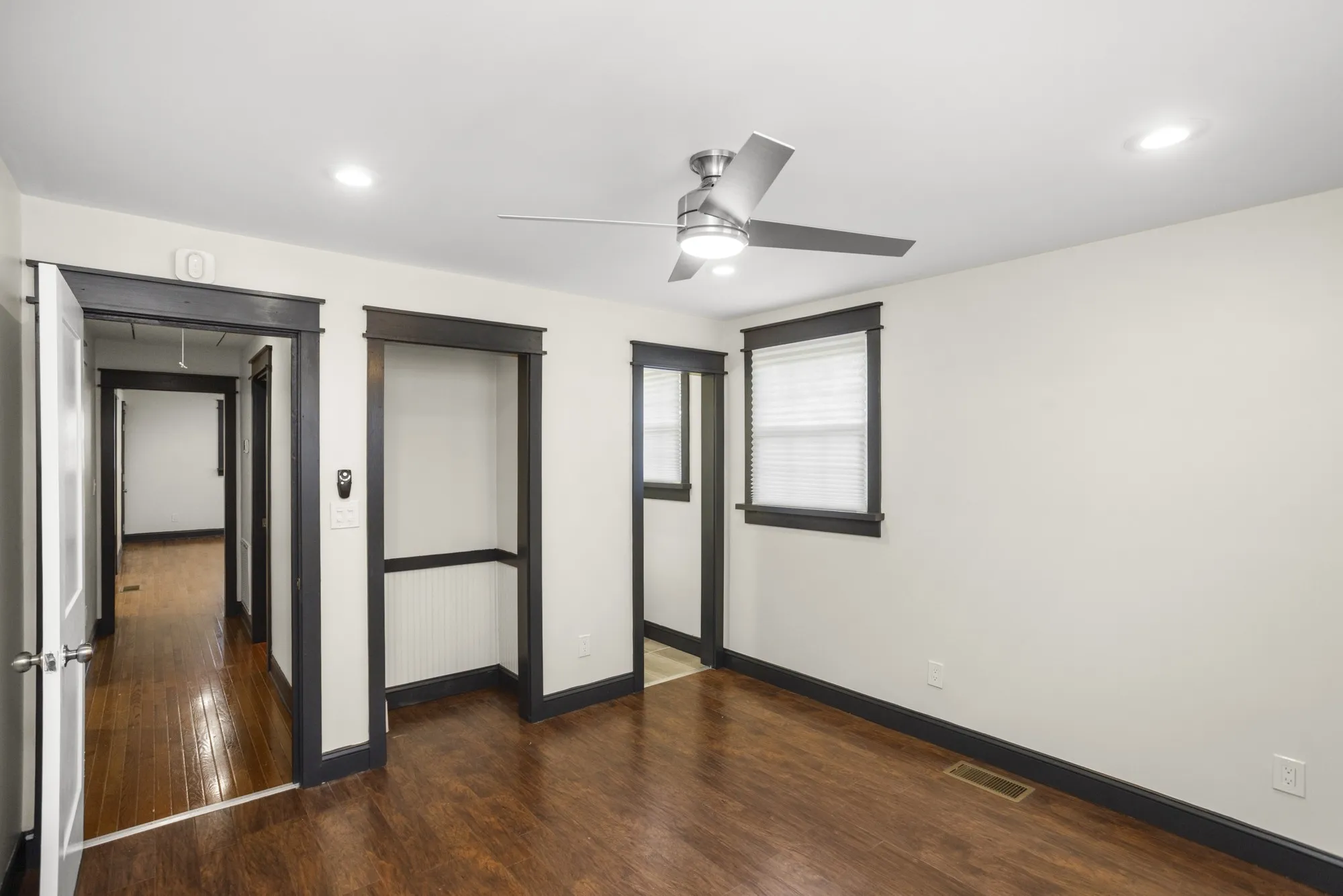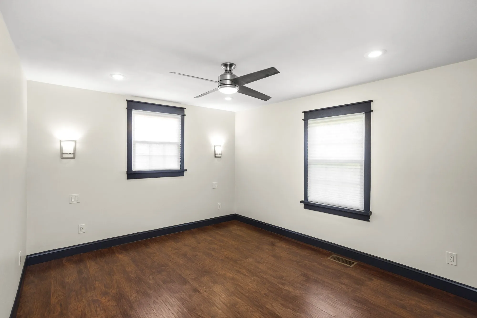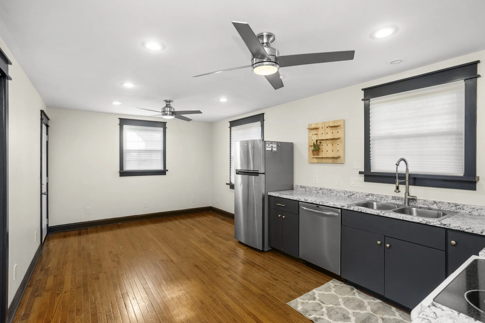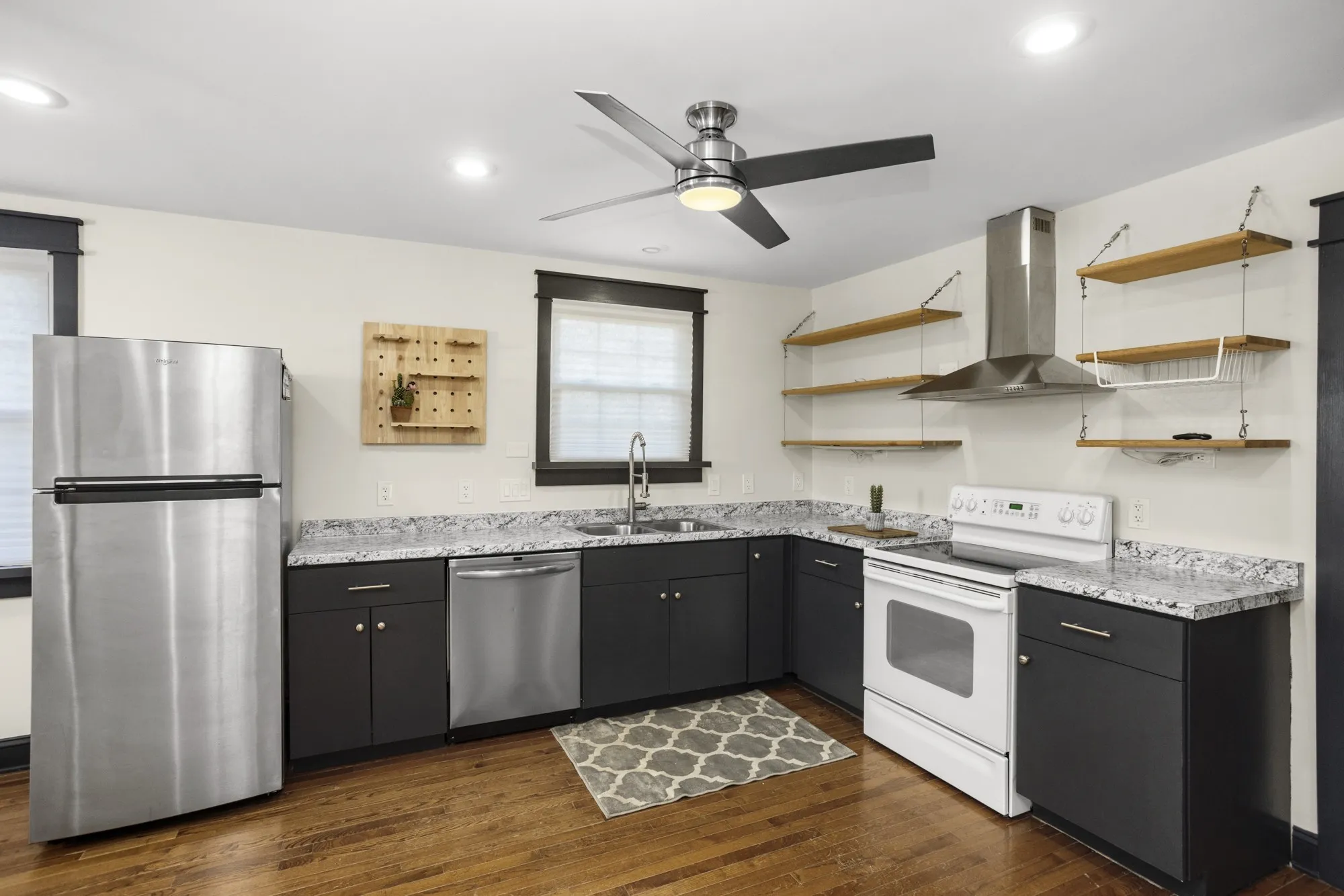 This fully renovated home offers 3 spacious bedrooms, 1.5 baths, wood floors/tile throughout, updated countertops in kitchen, new double basin stainless steel sink, floating shelves, recessed lighting, stylish ceiling fans in kitchen/dining area, newer appliances, oversized tile wrapped shower with dual shower heads and double vanities in primary bath. Additional amenities include: half bath located in owner’s suite, dual closets in owner’s suite, new fixtures throughout, a sizable fenced treed backyard, large deck in rear for entertaining, an abundance of driveway parking including a turnaround, a storage shed, a partially finished rec room in the basement, (not included in listing square footage), and a 2 car garage adjacent to the rec room area that could be kept as a garage or converted for even more additional space.