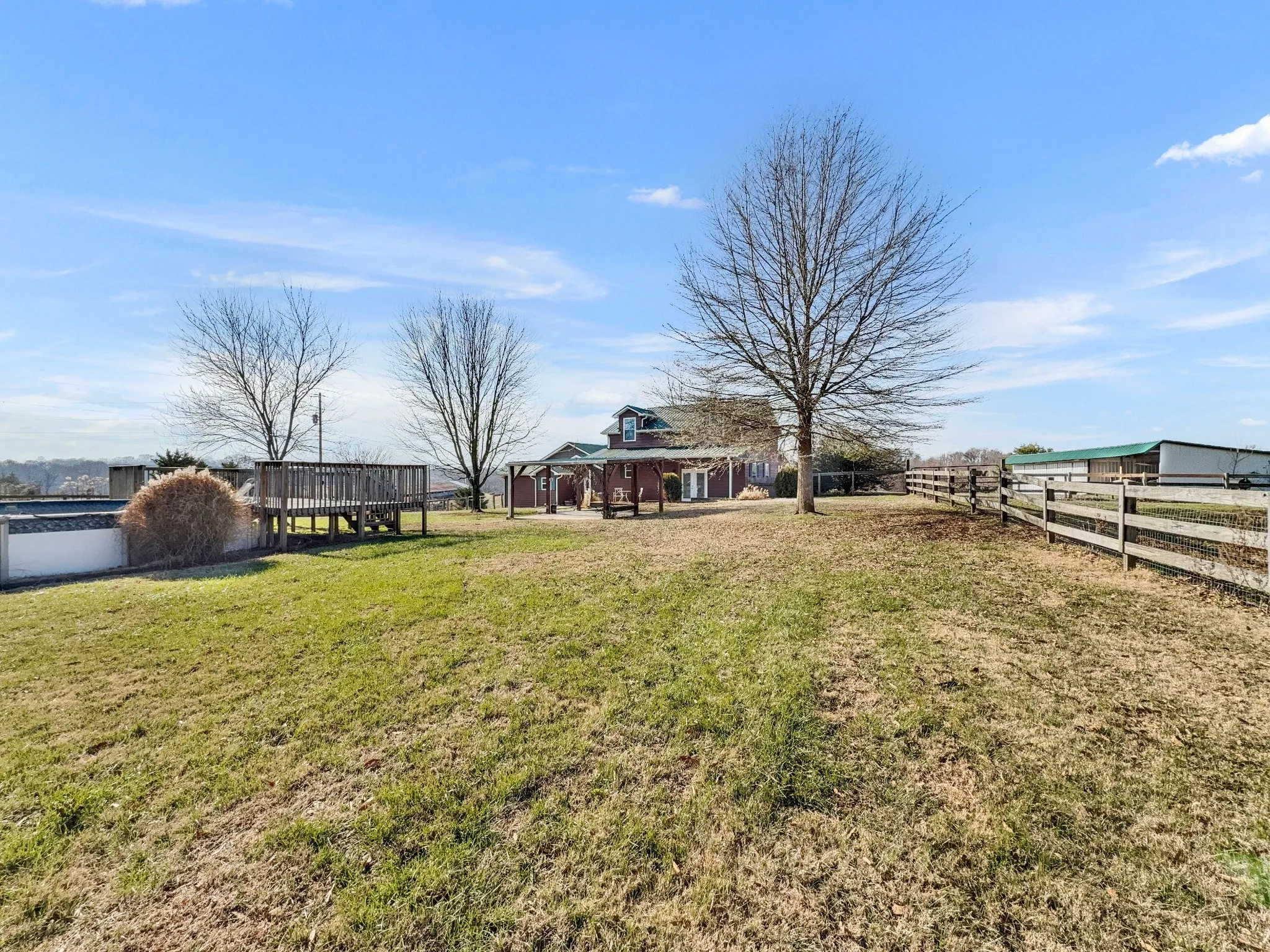 Beautiful 13-acre retreat blending peaceful country living with modern comfort. Home features 3 bedrooms, 3 full baths, a flex room, and an upstairs bonus ideal for guests or multigenerational living. Renovated kitchen and primary bath include granite countertops and a sauna shower. Outdoor space offers a pergola, pool, and deck, perfect for relaxing or entertaining. Fully fenced acreage includes a 5-stall equipment barn and plenty of room for animals and recreation. Some images may include virtual staging.