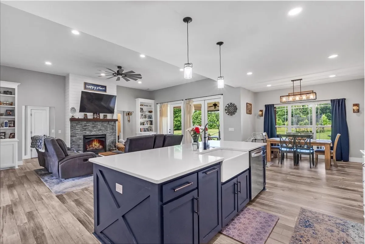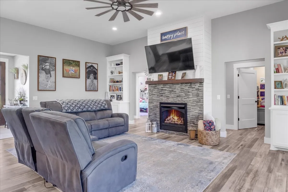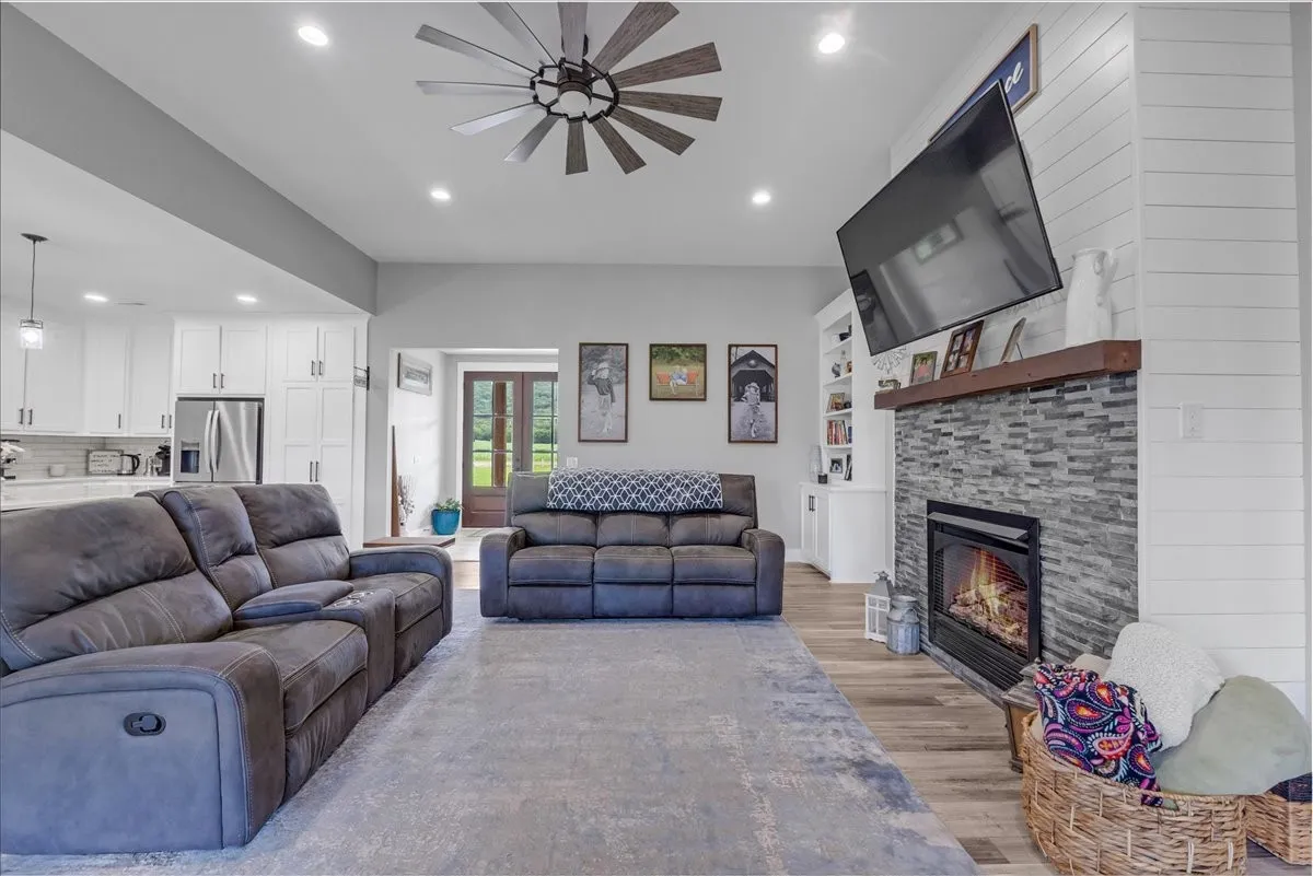 You can have it all in this dream home with nearly 2700 sq ft, situated on 5.36 Acres w/ panoramic mountain views, covered porches & patios perfect for slow mornings soaking in the view or entertaining guest w/ plenty of space, as you enter you you are welcomed into a large open floorplan with tall living room ceilings, lots of built ins and and a cozy fireplace, the kitchen features a massive island to be the centerpiece for all of your gatherings, Solid surface countertop, nice back splash, a pot filler faucet above the gas range, & a secret hidden pantry behind the custom cabinet doors, Primary bath has a spacious tile shower and oversized soaking tub, utility & primary bedroom closet are located adjoining for convenience. Each large bedroom features walk in closets, guest full bath has tile surround. This home is a true show place & has 3 bedrooms, 2.5 baths, and a large office space and has tons of storage. The detached garage measures out at 35×26 w front and rear entry