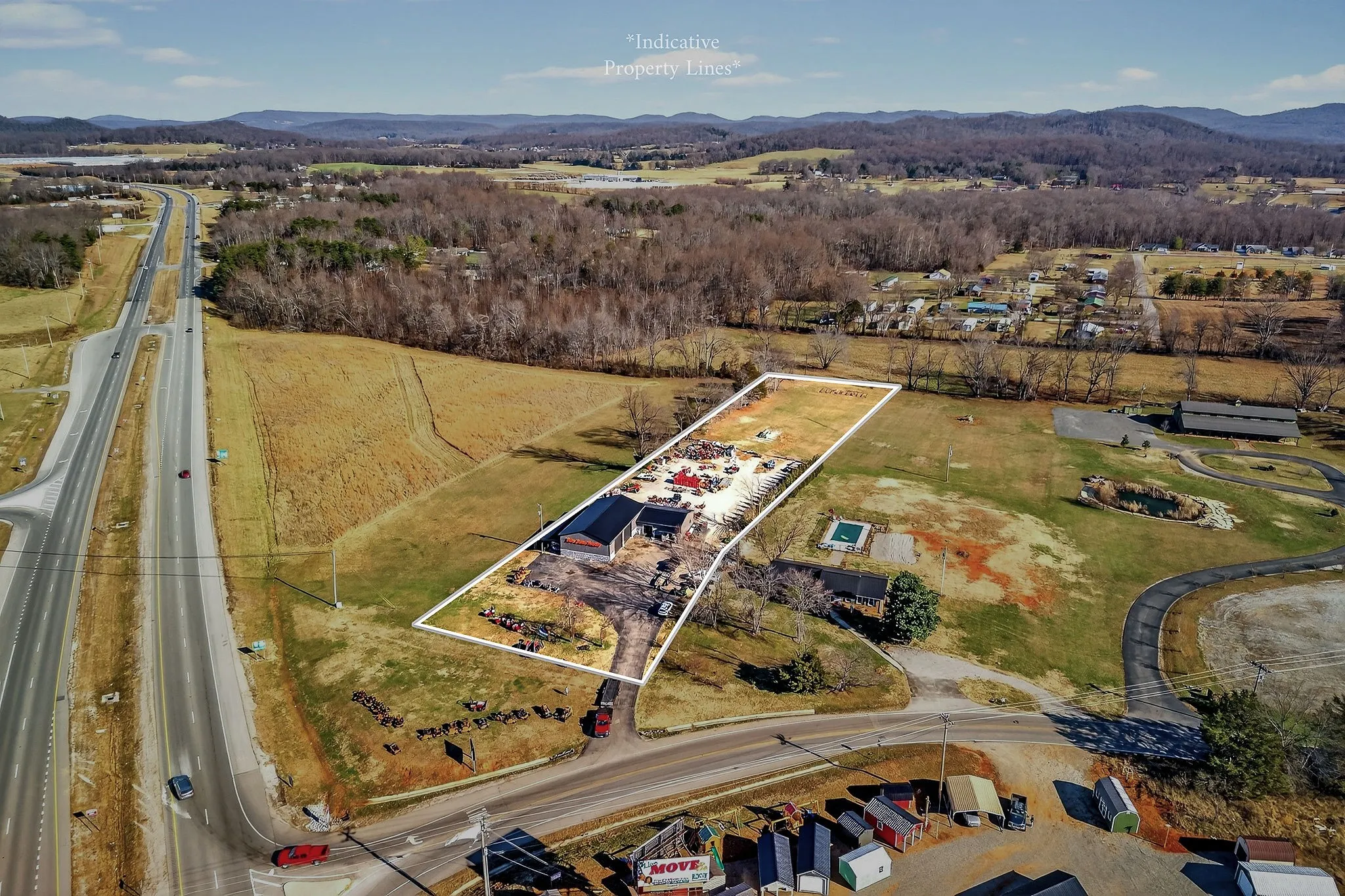 Highly visible commercial property on a prominent corner at Hwy 111 and Rickman Monterey Hwy — a location with strong exposure and high traffic on one of the area’s main highways (appx 17,800/day). Situated on 2.02 acres, this property includes a 3,600 sq ft heated and cooled building featuring an office area, bathroom, and two large shop spaces. The building has two 12×14 bay doors and one 8×10 bay door, all on concrete floors, and over half of the structure was rebuilt new in spring 2025, providing quality space for operations. There is ample paved parking in front and a gravel parking lot behind, along with attractive stonework for eye appeal. Currently operating as a successful lawn and garden sales and maintenance business, the location and improvements lend themselves to nearly any commercial use you desire. A detached mobile home was previously located on the back of the property, indicating utilities are likely present for further development or expansion. Excellent opportunity for owner-user or investor with strong corner visibility and convenient access to regional markets.
