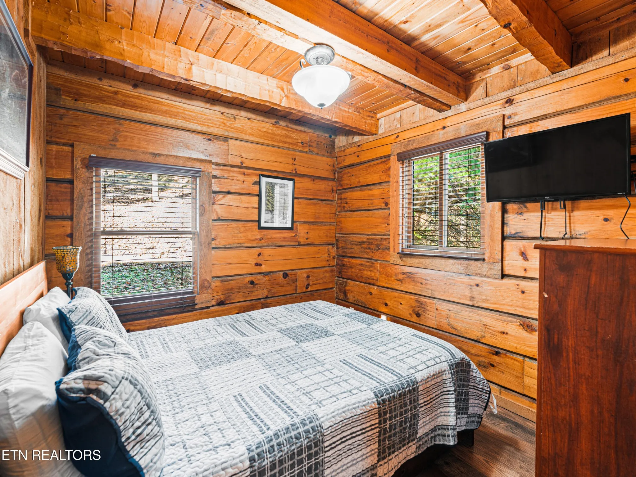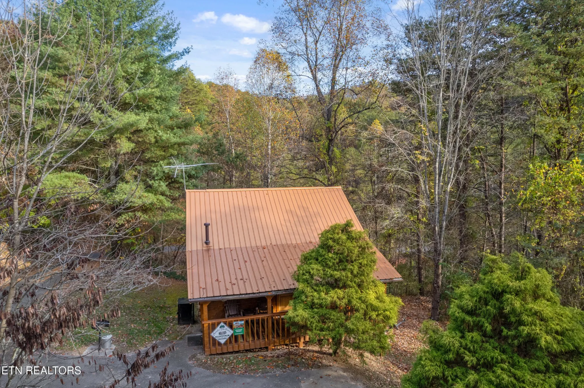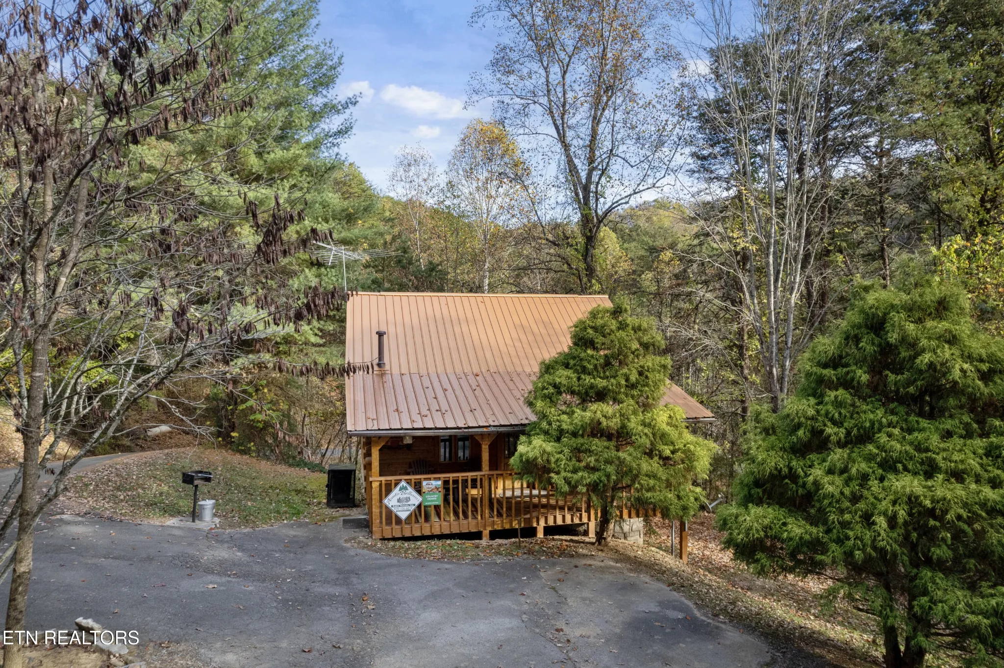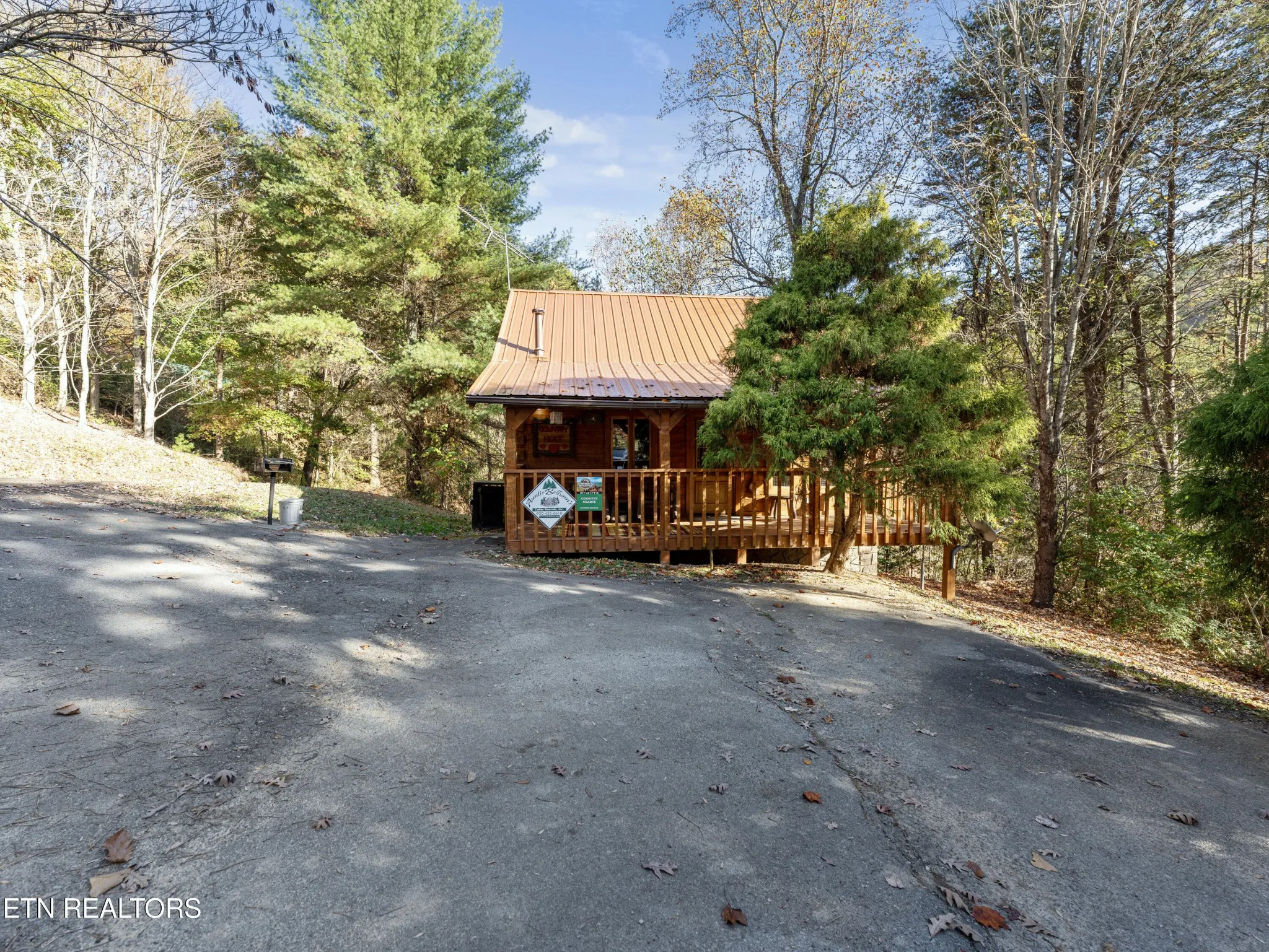 This Romantic Getaway cabin is for you! Country Hearts is a classic log cabin style with a private hot tub on the back screened in porch; This cabin is conveniently located within minutes from the parkway and Wears Valley and everything Pigeon Forge. This is a turn key, move in ready cabin with a long cozy front porch with plenty of room to sit, take in the fresh air, and sip your coffee in the mornings. Walk in the front door and there’s a living room stone surround fireplace with a TV mounted above it along with a couch to cuddle on, and an armchair. To your right is a fully equipped country kitchen and dining area. Down the hall is a queen size bedroom with a TV, a full bathroom with a standup shower, access to the screened-in porch with seating and an awesome, private hot tub perfect for soaking at the end of a long day. Head upstairs to the loft to take advantage of the jacuzzi tub or entertain a round or two of billiard ball. Come see the Country Hearts cabin today! By Appointment Only. STR Property. Parking with a large back yard.