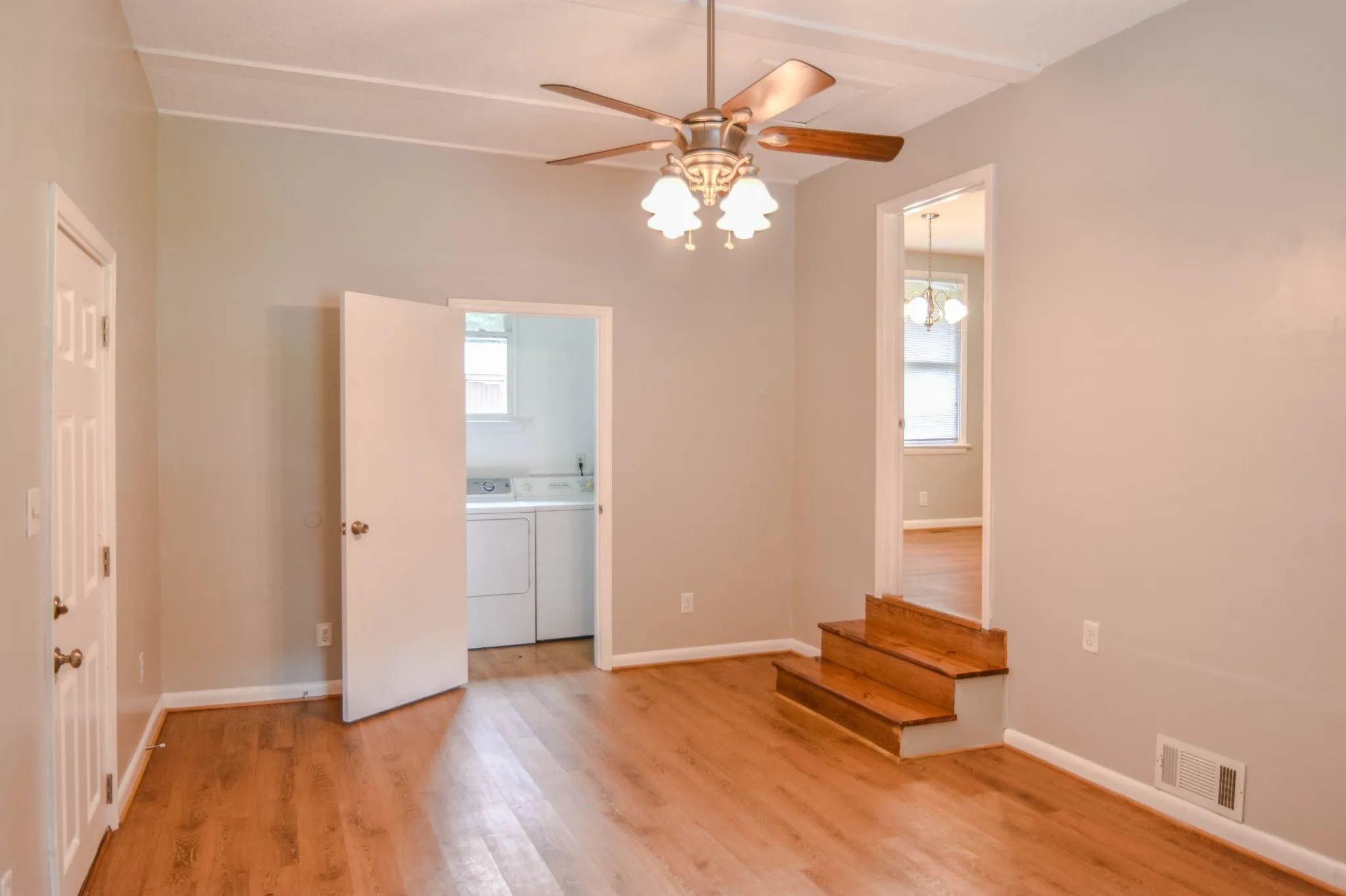 Beautifully updated home, minutes from Fort Campbell, laminate throughout, large living room, spacious eat in kitchen with island, three large bedrooms, fully updated bath, den off of the kitchen with laundry room, washer/dryer included, fenced yard, pet friendly! Pet rent applicable.