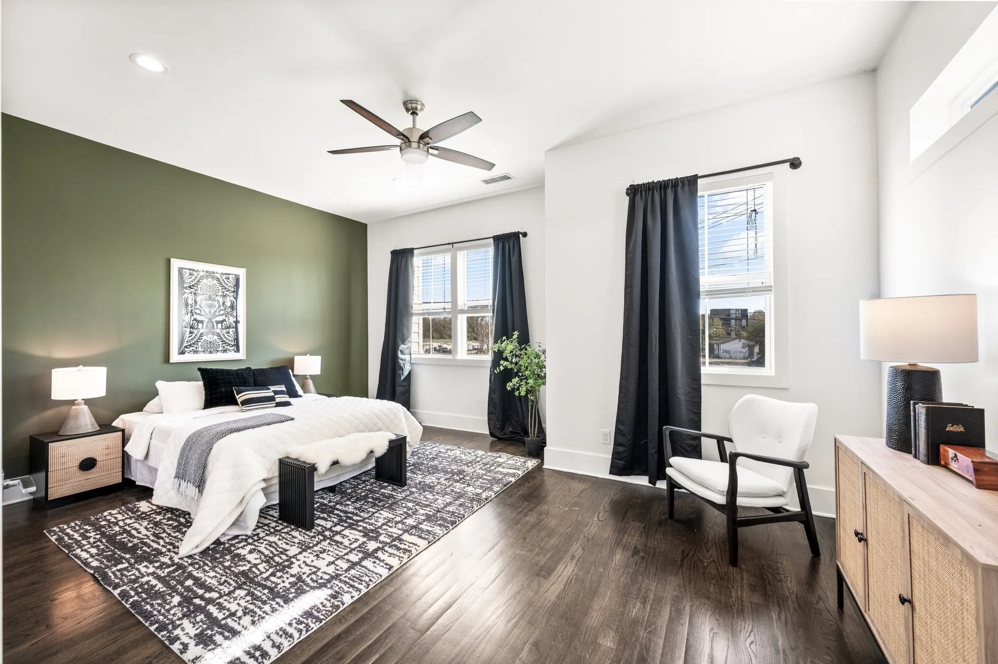 SELLER TO PAY $5K TOWARDS BUYER’S CLOSING COSTS WITH ACCEPTED CONTRACT! Beautiful modern home with a Nashville skyline view only minutes from downtown! Entertain on your private rooftop deck – perfect for sunset views and city lights. Enjoy 10 ft ceilings with amazing natural light, hardwood floors and new interior paint. Beautiful kitchen boasts white cabinetry, large stone island with custom tile backsplash and cozy dining nook. Built in bar area is great for hosting friends and family. Primary suite is a true oasis with gorgeous finishes and spacious custom walk in closet. 3rd floor includes the perfect flex space – office / workout area or den. Fenced in private back yard with stone patio for outdoor enjoyment. Close to everything Nashville has to offer – Less than 5 miles to Germantown, Downtown, West End, East Nashville. Come see this wonderful opportunity to live in the city!