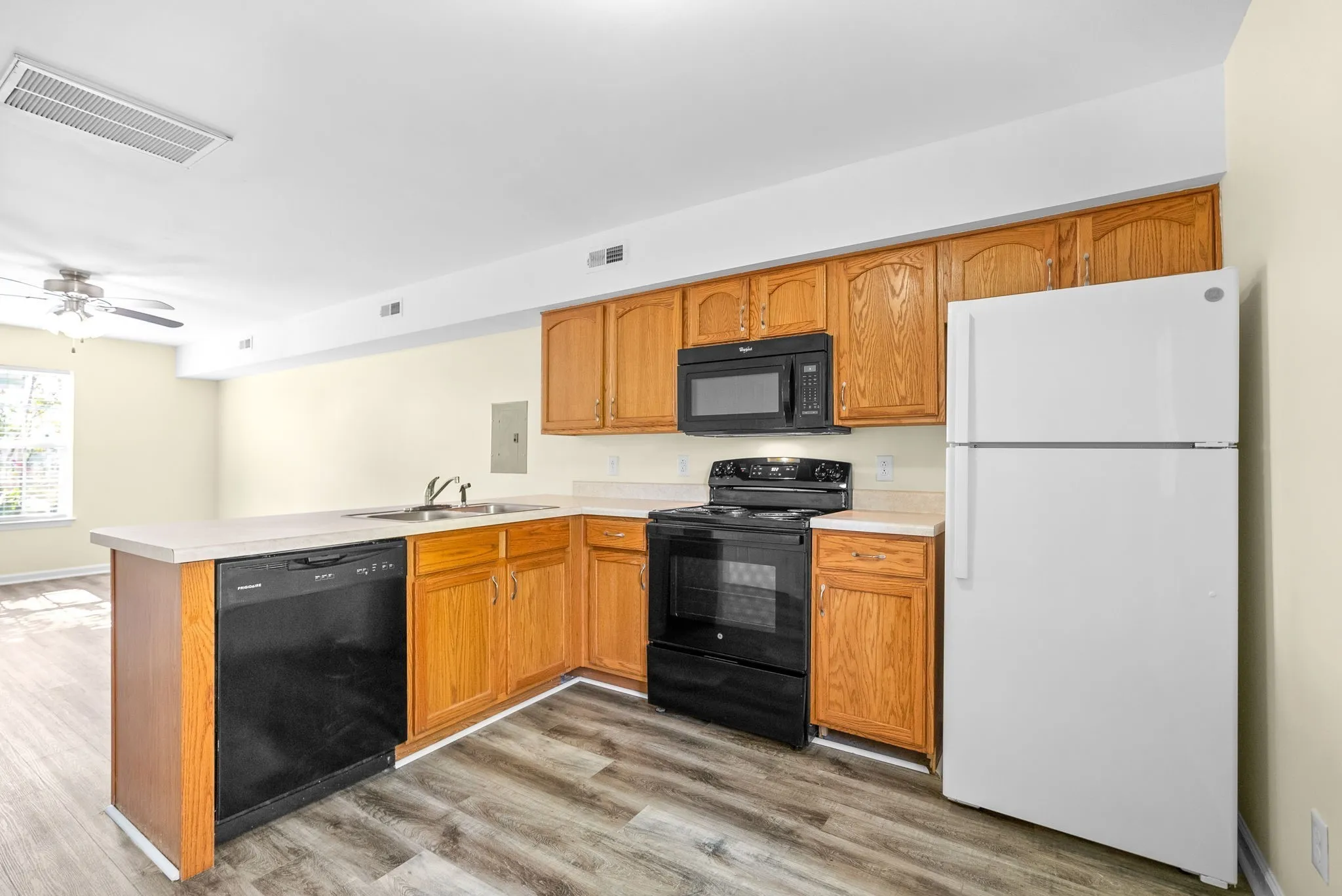 Welcome to our renovated 2-bedroom, 1.5-bathroom townhome in Clarksville, TN. This stylish unit features central heat & air, ceiling fans, and a separate living room for your comfort and convenience. The eat-in kitchen boasts a breakfast bar and a laundry room for added functionality. With plush carpeting in the bedrooms, stylish LVP flooring, and extra closets for storage, this apartment has everything you need. Relax on your personal deck with your mature pet, 30 LBS or less or less. Pets fees & restrictions apply, inquire for details.
