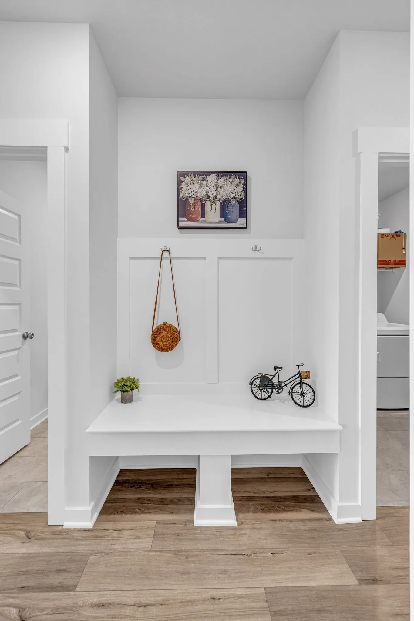 Features a private first floor home office and guest suite! Open concept kitchen with lots of cabinet/countertop space and a huge island with 42″ shaker style cabinetry, quartz tops, tile backsplash, gas cooking, and stainless steel kitchen appliances. Luxurious primary suite with tile floor, executive height cabinets, quartz top, and oversized walk-in ceramic tile shower with built-in bench seat. LVP flooring in main living areas, LVT in secondary baths and laundry. Luxurious features throughout! Ring doorbell, Schlage keyless entry, Honeywell WIFI thermostat, and more! Spacious bedrooms with walk-in closets, drop zone to keep everything neat and organized, 2″ faux wood blinds on operable windows. Tankless water heater