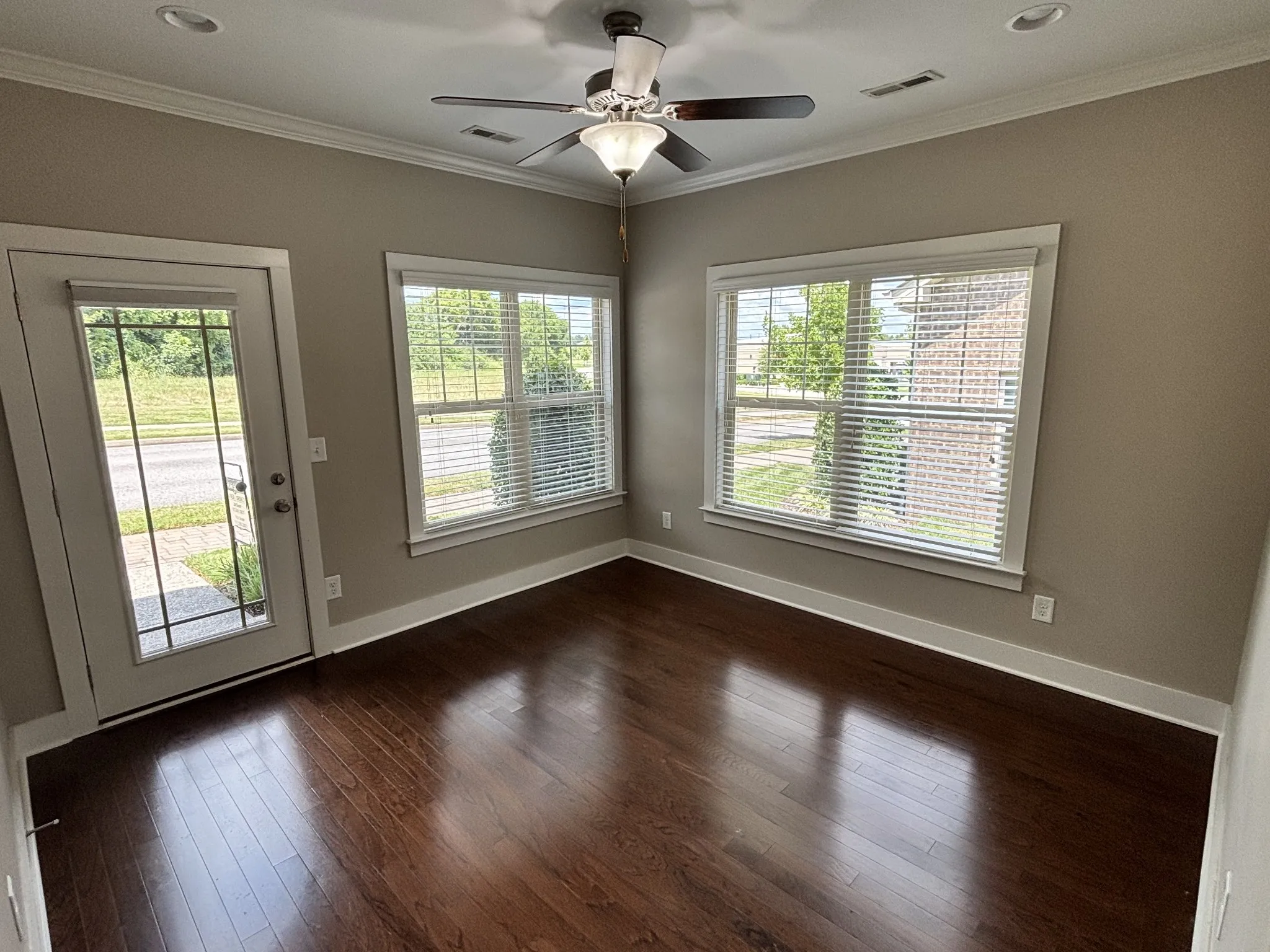 Fresh paint and new carpet make this home move in ready for you! Enjoy all the original model home upgrades, in this lovely, end unit cottage in the Retreat at Fairvue. Terrific chef’s kitchen with large pantry, upgraded countertops and backsplash, and under the cabinet lighting. Elegant crown molding, wood window moldings, and engineered wood floors make this home a real beauty. The end unit provides you with 6 extra windows! The separate study, den, or sunroom + 2 bedrooms, are all located on one floor. 2 car garage with newly coated garage floor, and gated patio. Large storage closet perfect for holiday decor or other lesser used items. HOA fee covers building insurance, Direct TV, internet, and lawn maintenance, providing you with a great “lock and leave” lifestyle for those who love to travel. Banking, Walgreens, and Publix are easy walking distance, along with a number of small shops and a fitness club.