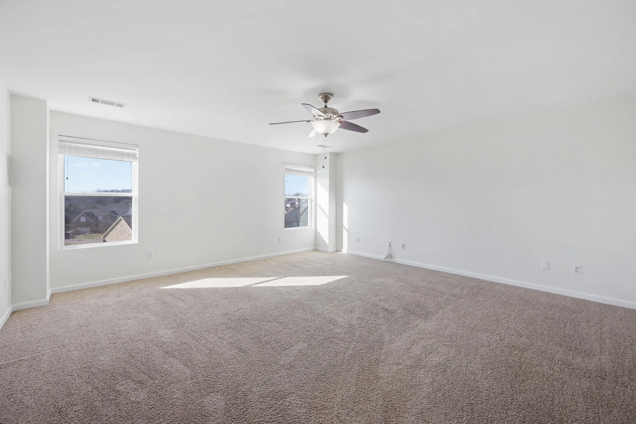 All three bedrooms are located upstairs, each with walk-in closets, including a spacious primary suite with a private bath featuring a separate soaking tub and shower. An extra-large bonus room offers flexible use as a media room, home office, or additional living space. Convenient upstairs laundry room.