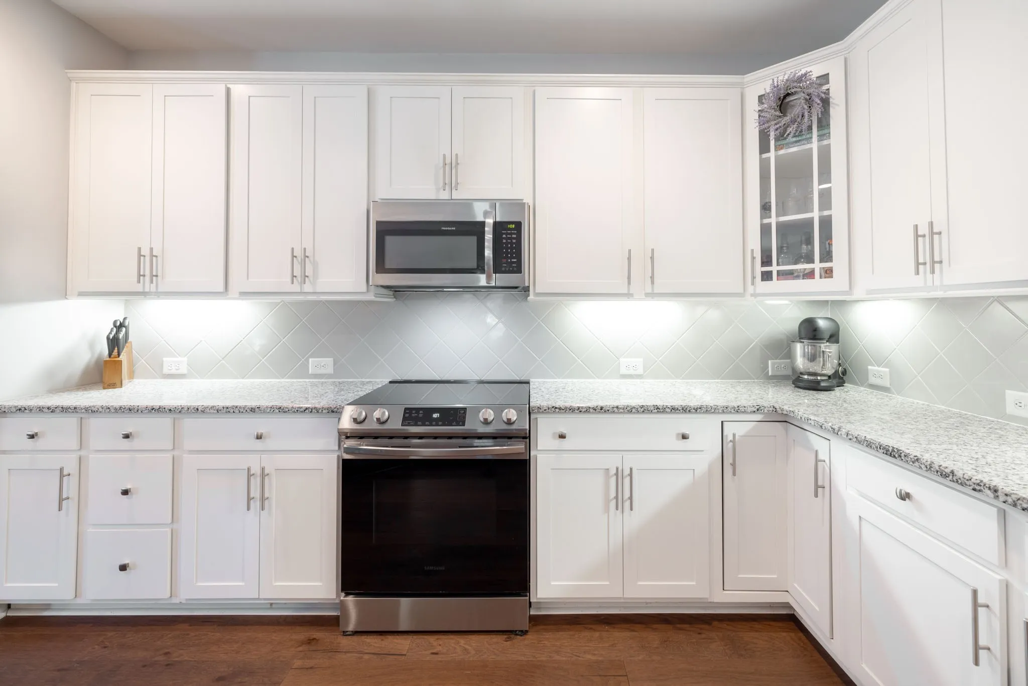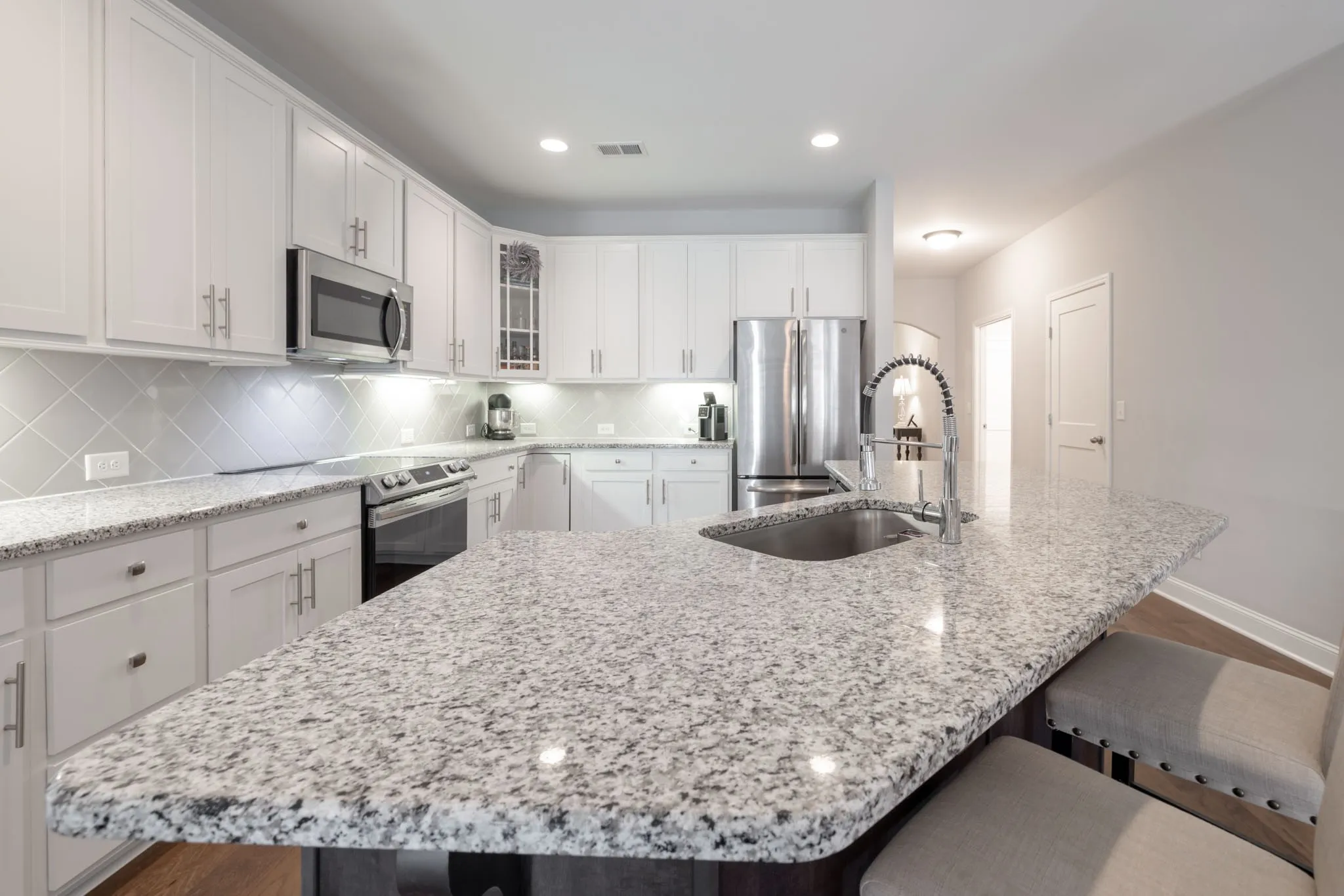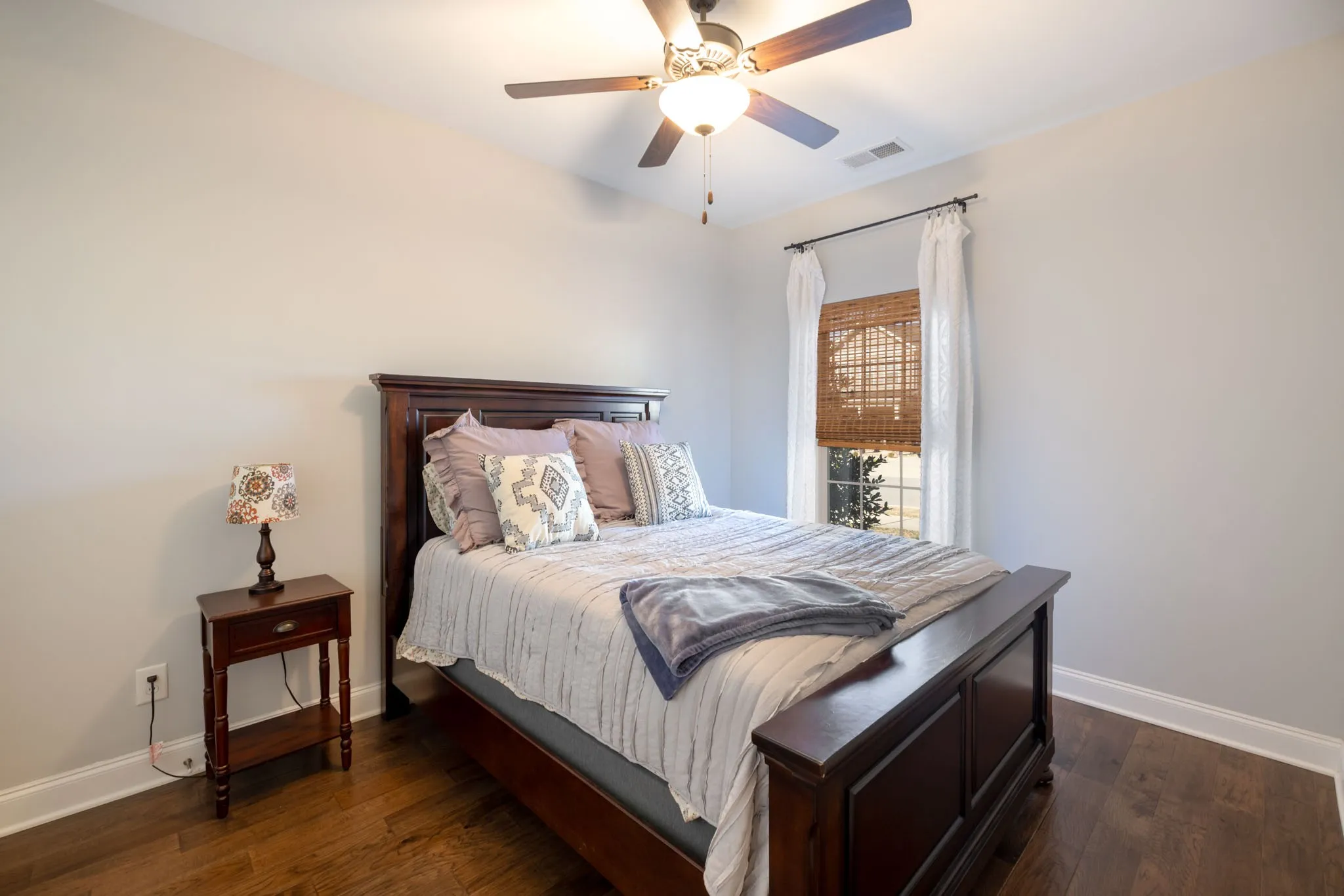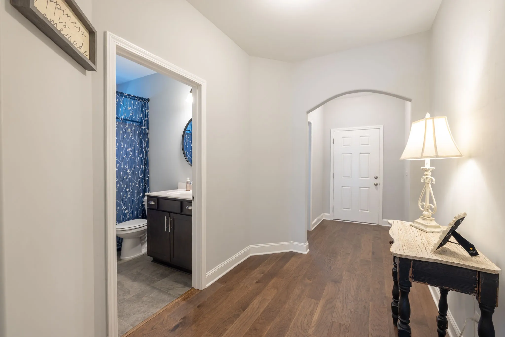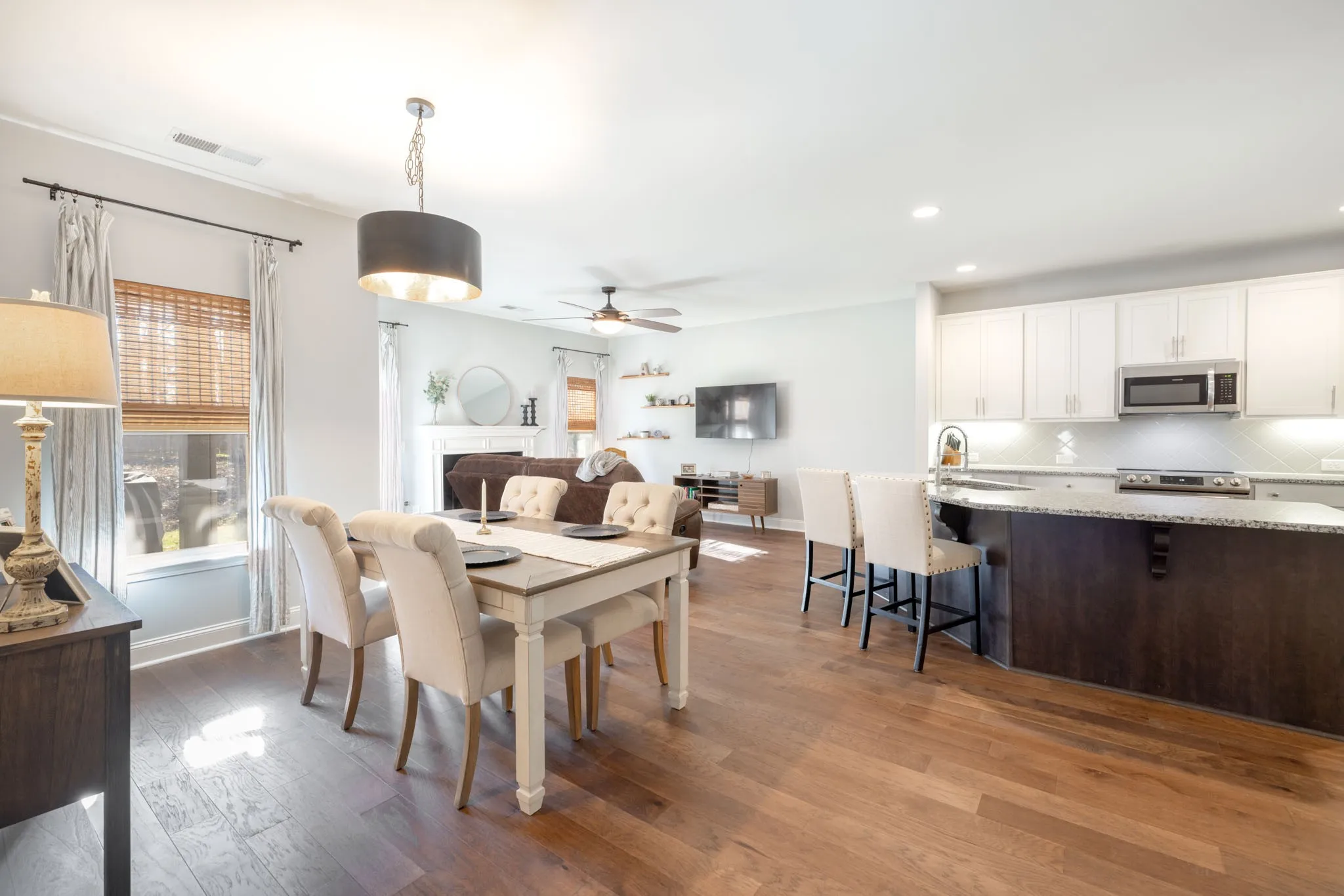 Welcome to Summerlin! Experience the quality of a home that still looks and feels like new construction without the wait in this meticulously maintained “Addison” floor plan, perfectly situated on a quiet cul-de-sac. While entering the home, you are met with a beautiful brick archway over your covered front porch. Inside you will find a one-level home that is a standout, featuring an extensive upgrades package that includes gorgeous Keystone granite countertops, 9ft ceilings, elegant double archways, and premium hardwood flooring with no carpet throughout. The thoughtful split-bedroom layout provides maximum privacy and includes a versatile flex room—ideal for a home office, nursery, or hobby space. Every detail has been considered, from the upgraded lighting and designer mirrors to the ceiling fans in all primary living areas. The kitchen has beautiful white cabinets with under cabinet lighting, plenty of counter space, and extra plugs for all of your appliances. Combine that with the large island with bar stool setup and you’re ready for family and friends to enjoy this home today! The main bedroom has a suite that leads into a massive walk in closet! Don’t miss the hidden gem storage closet inside the laundry room! Step outside to the oversized covered rear porch, which overlooks a fenced treeline, offering a private and serene setting for entertaining. Complete with a two-car garage featuring upgraded brown doors. This move-in-ready gem offers the perfect blend of modern luxury and tranquil suburban living. Check out the 360 tour below or message listing agent for a link to be sent to you!