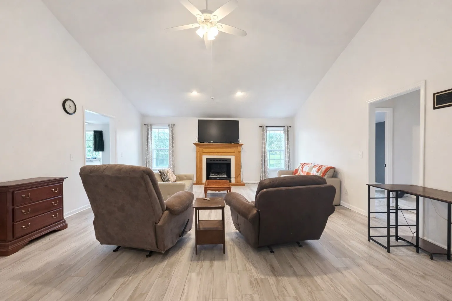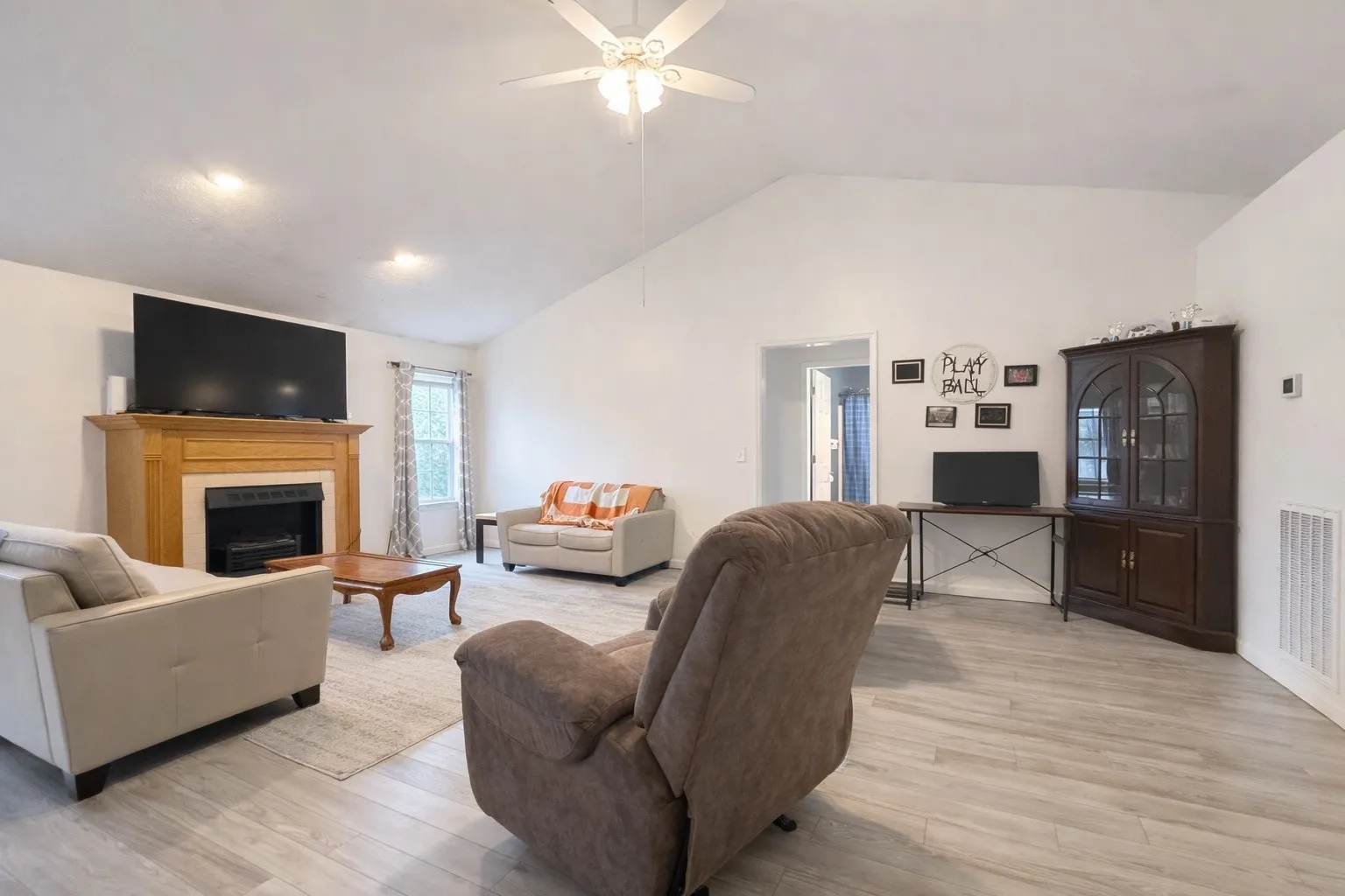 Inside, the home feels warm and welcoming. Three bedrooms and two full baths provide flexibility for family, guests, or a home office. Fresh paint and updated flooring throughout most of the home create a clean, move-in-ready feel without losing its cozy charm. Curl up by the fireplace on crisp fall nights, or enjoy the added bonus of a converted garage, turned rec-room, perfect for a home gym, playroom, hobby space, or game nights.