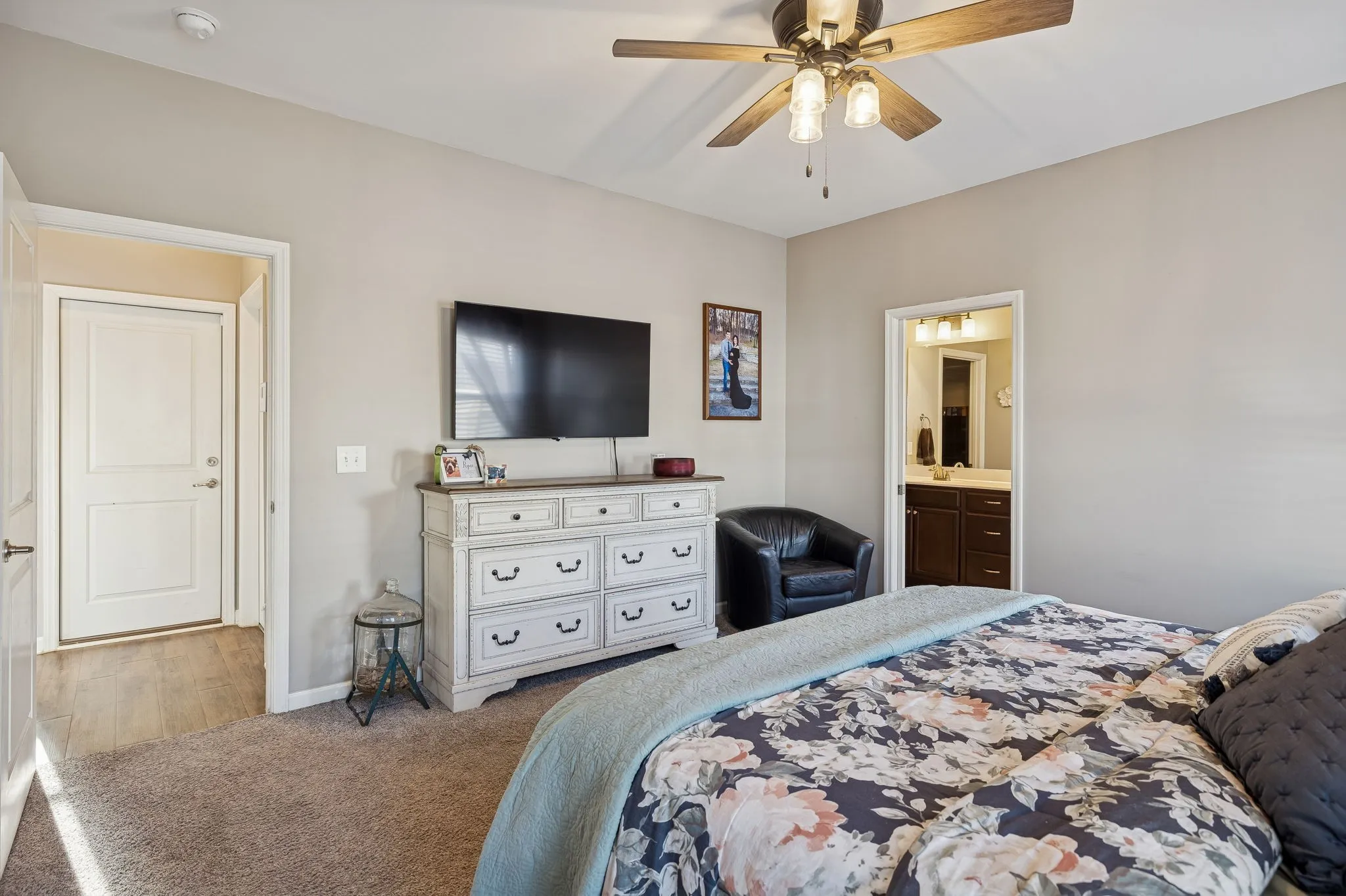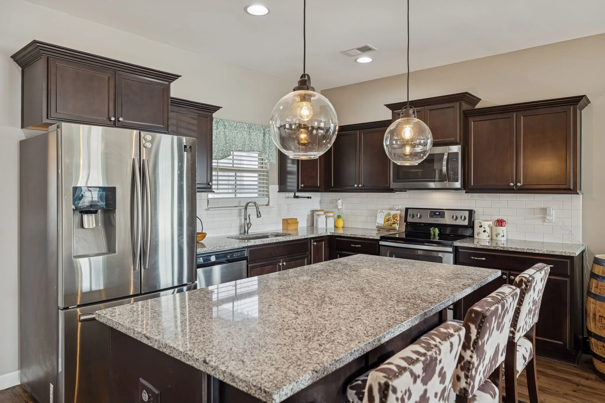 One of Landmark’s most popular floor plans, this beautiful two-story home offers 3 bedrooms and 2.5 baths with a thoughtfully designed open-concept layout. The kitchen features a large island, abundant countertop space for cooking, granite countertops, LVP flooring, stainless steel appliances, and more. The primary bedroom and laundry room are conveniently located on the main level. Upstairs, you’ll find two spacious bedrooms, a full bath, and a bonus room perfect for a media space, playroom, or home office. Don’t miss the walk-in storage room and the extra-large guest closet—ideal for storing all your prized possessions. Enjoy outdoor living on the covered porch and open deck overlooking the level, fully fenced backyard—perfect for relaxing or entertaining. Make sure you look at the multi open concrete pad ready for entertaining all your guests. Perfect for so many different uses!