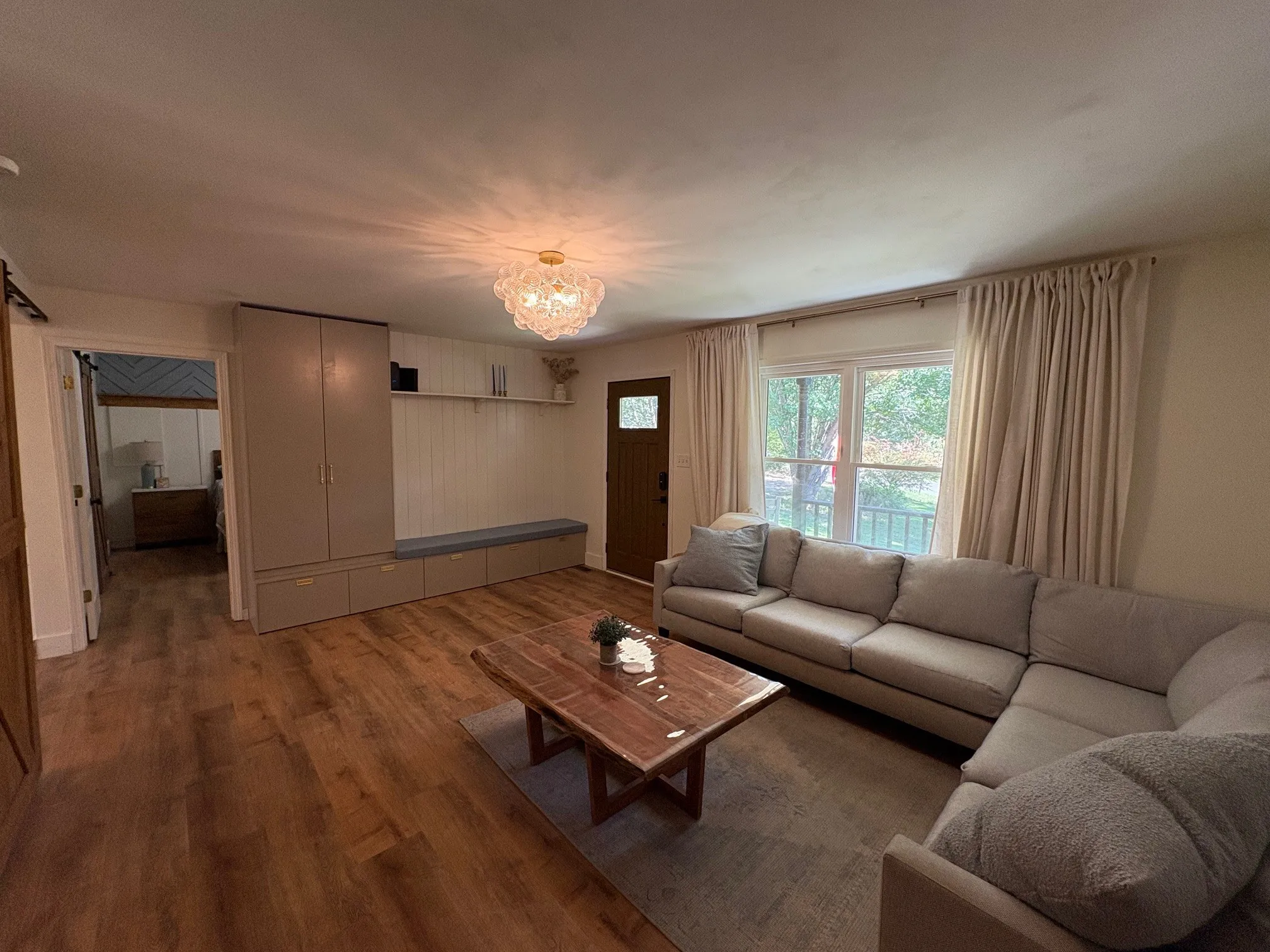 This well-maintained 3-bedroom, 2-bath home is situated on 1.05 acres, offering a peaceful, private setting just minutes from I-24. Fully renovated in 2024, the home features hardwood flooring throughout and a bright, inviting kitchen filled with natural light, equipped with a pantry for added storage. Featuring extra touches, including accent walls that add character and charm. Ample closet space is found throughout the home, along with a dedicated utility room for convenience. Outdoor features include a large fenced backyard with a fire pit, a wood deck ideal for entertaining, and a covered front porch surrounded by mature trees.