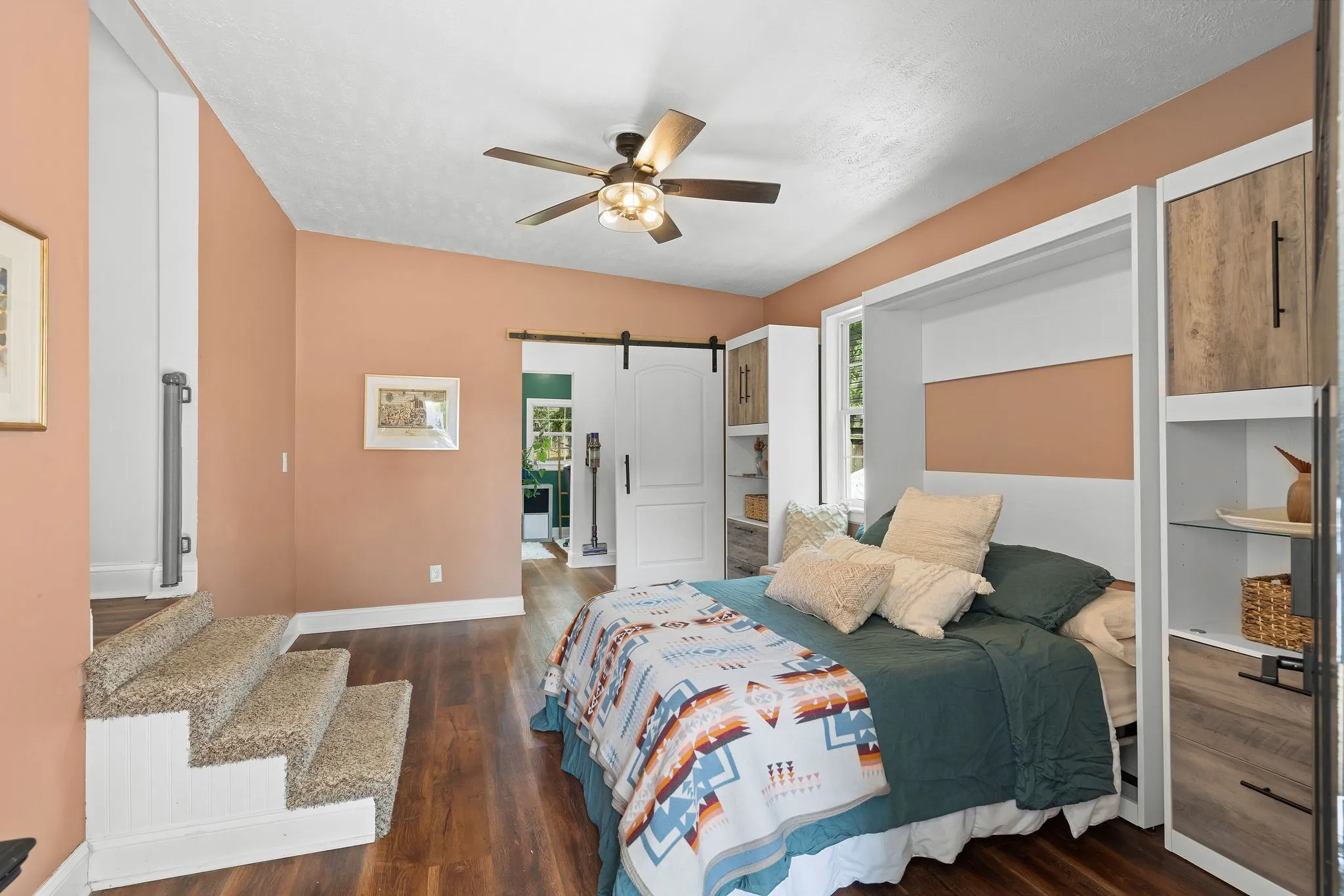 Murphy bed with storage for flexible living space.